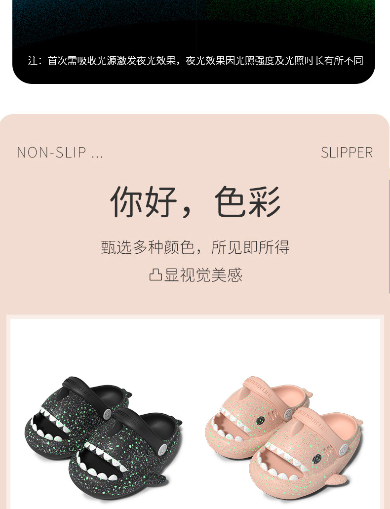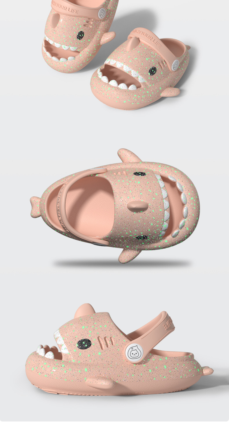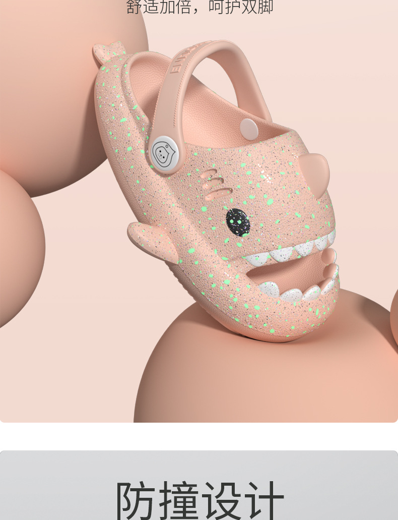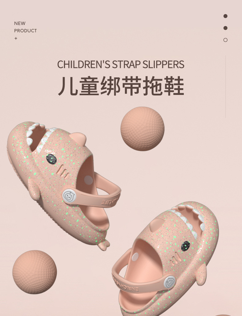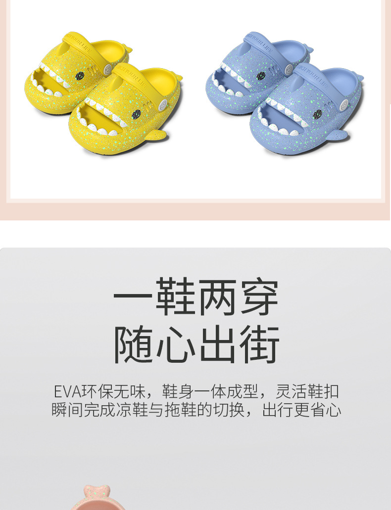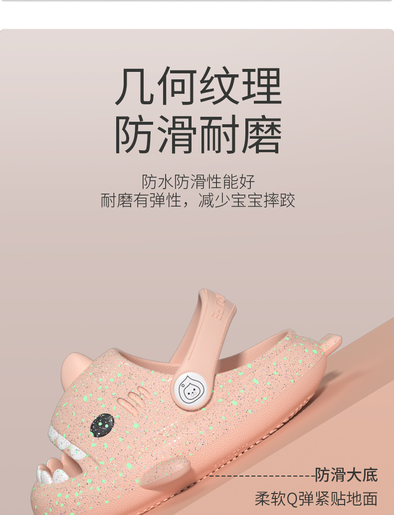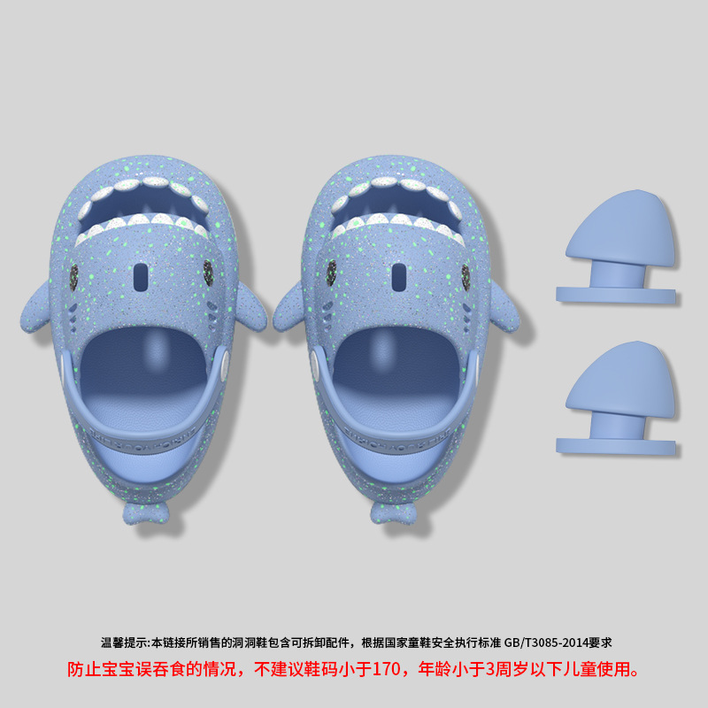 兒童鯊魚夜光拖鞋夏男女童防滑軟底卡通可愛小孩沙灘鞋寶寶洞洞鞋