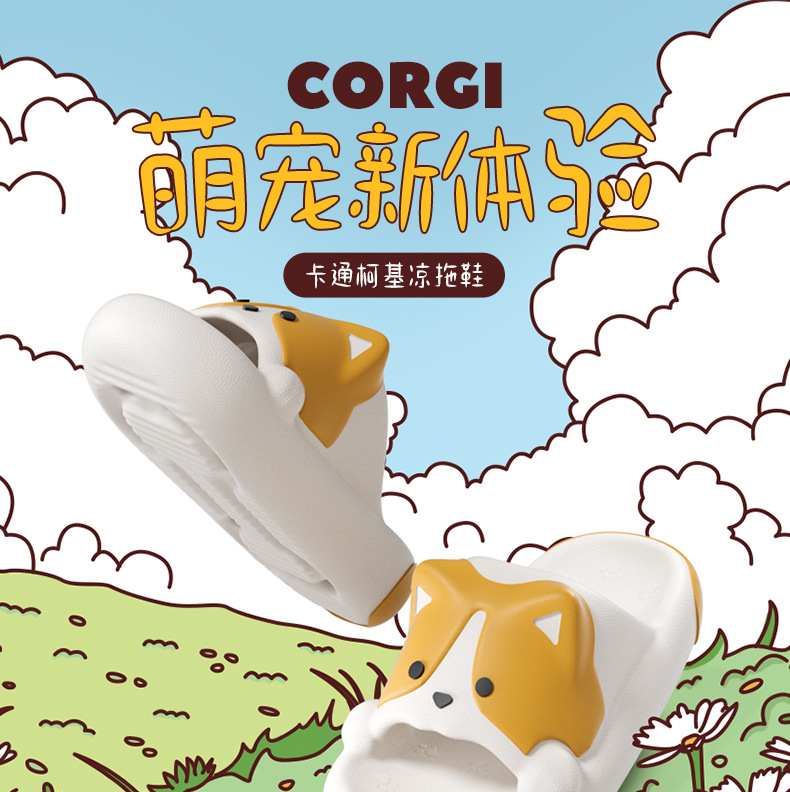 新款柯基拖鞋女夏季軟底防滑浴室穿居家外穿可愛踩屎感情侶涼拖鞋