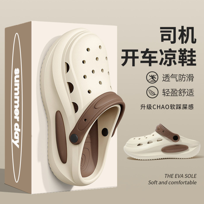 EVA新款洞洞鞋女款夏天包頭涼拖外穿沙灘度假時尚厚底洞洞鞋
