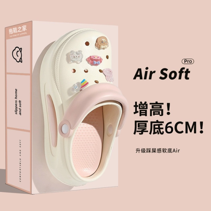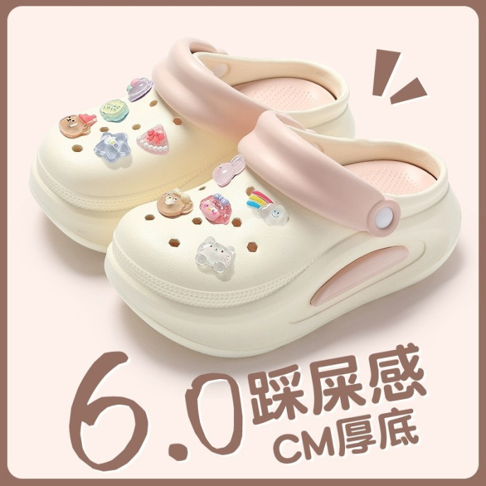 踩屎感洞洞鞋女夏季外穿2024新款厚底增高沙灘防滑防臭eva涼拖鞋