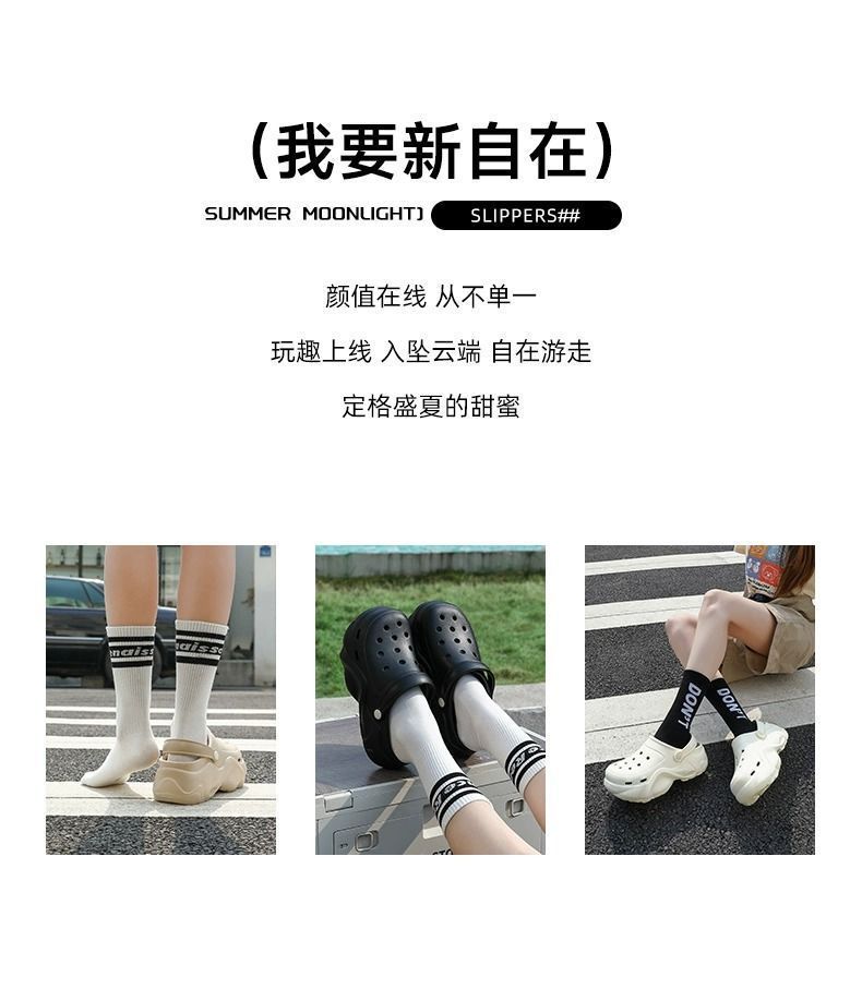 5.0厚底洞洞鞋女夏季外穿增高防滑可愛DIY沙灘踩屎感包頭涼拖鞋女