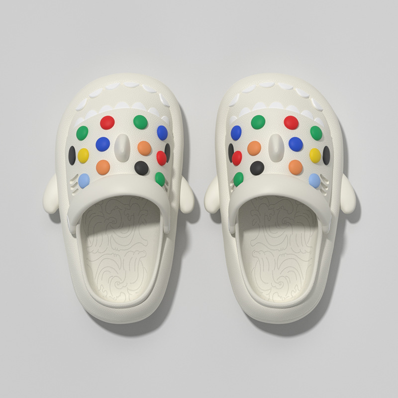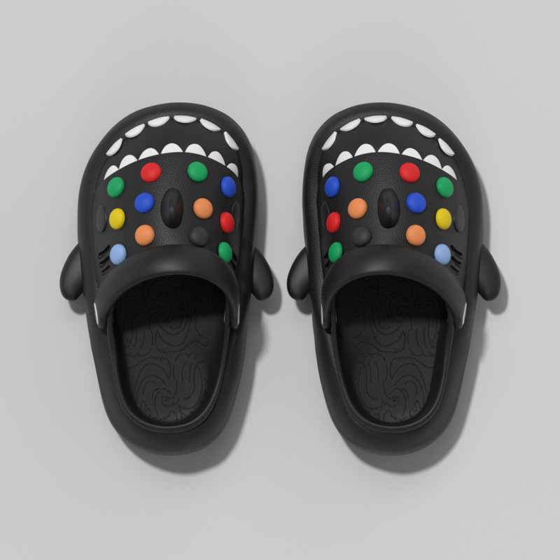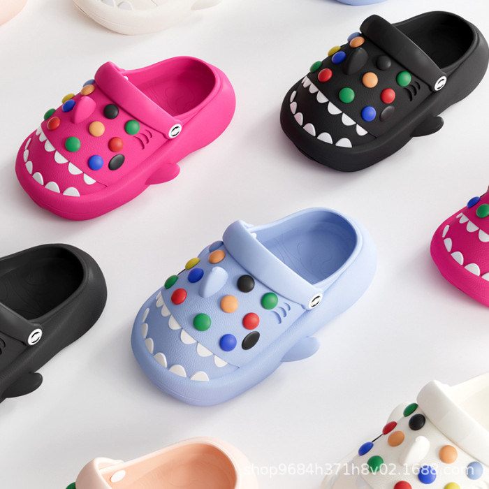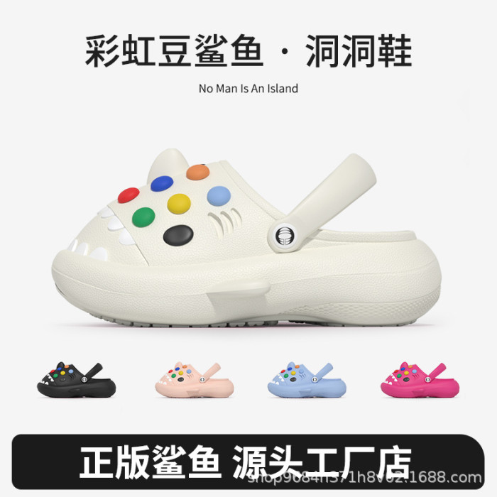 彩虹豆鯊魚洞洞鞋夏季女款EVA包頭拖鞋網紅爆款厚底涼拖