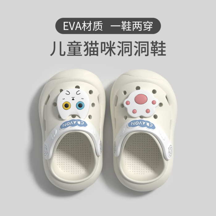 卡通貓咪洞洞鞋男童夏季軟底防滑寶寶沙灘鞋1-3嵗嬰幼兒拖鞋兒童