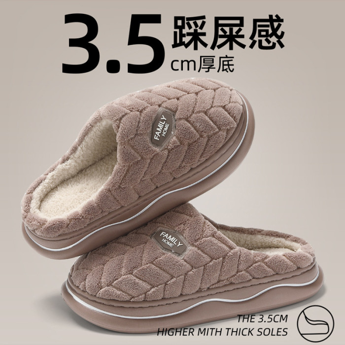 厚底棉拖鞋女秋冬季2024新款室內居家防滑情侶踩屎感毛絨拖鞋男士