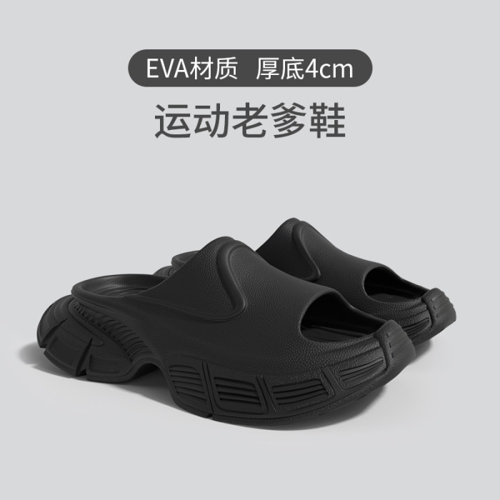 老爹運動拖鞋男士夏季2024新款高彈減震休閒戶外穿涼拖鞋厚底涼拖