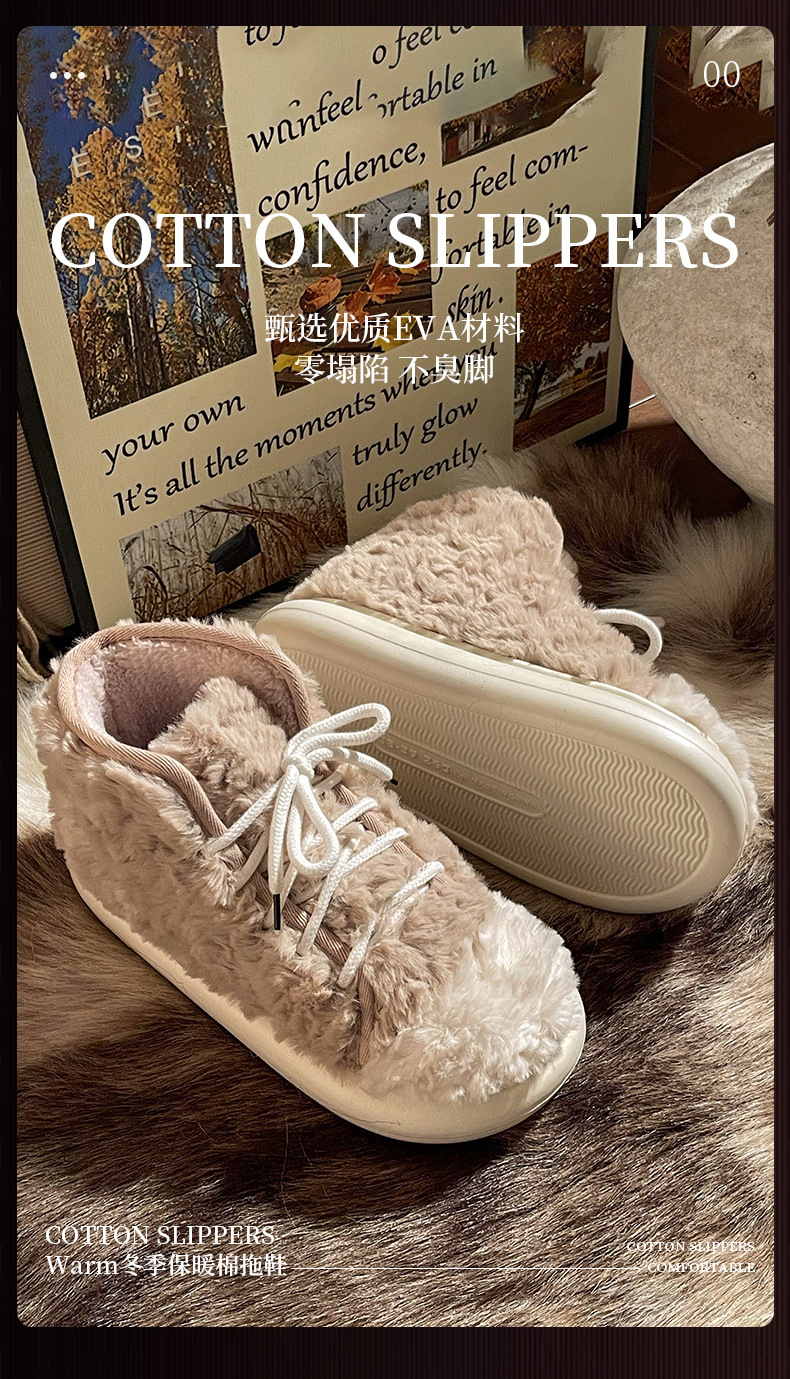 全包棉拖鞋女士冬季外穿時尚厚底加絨保暖2024新款韓版高幫棉鞋女