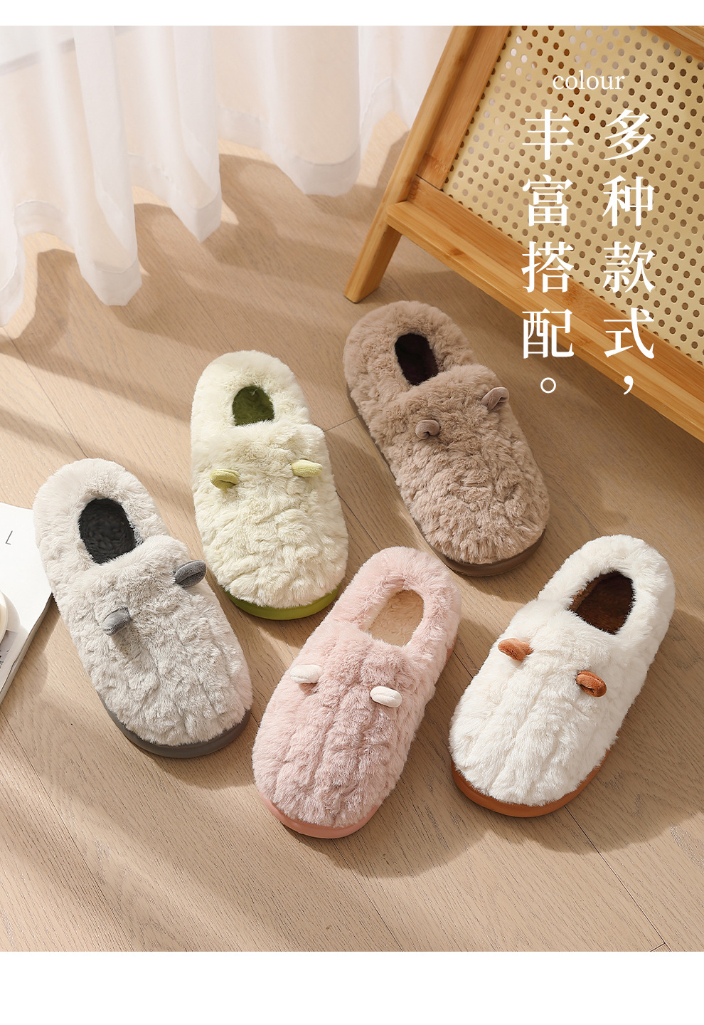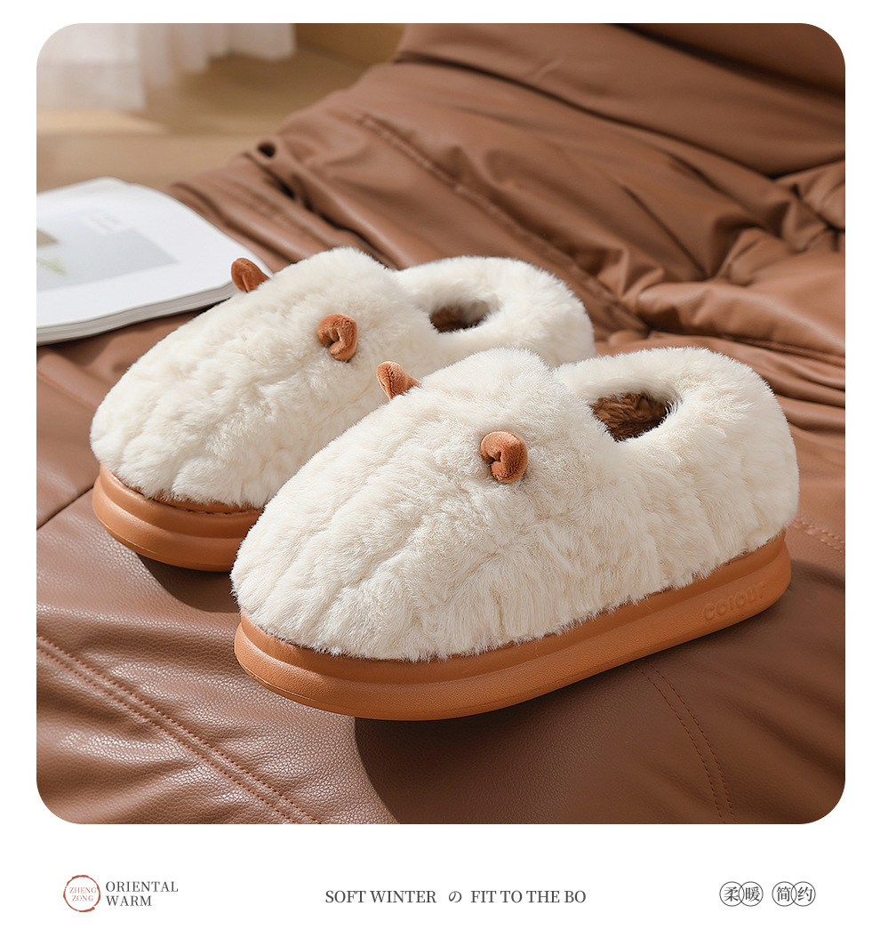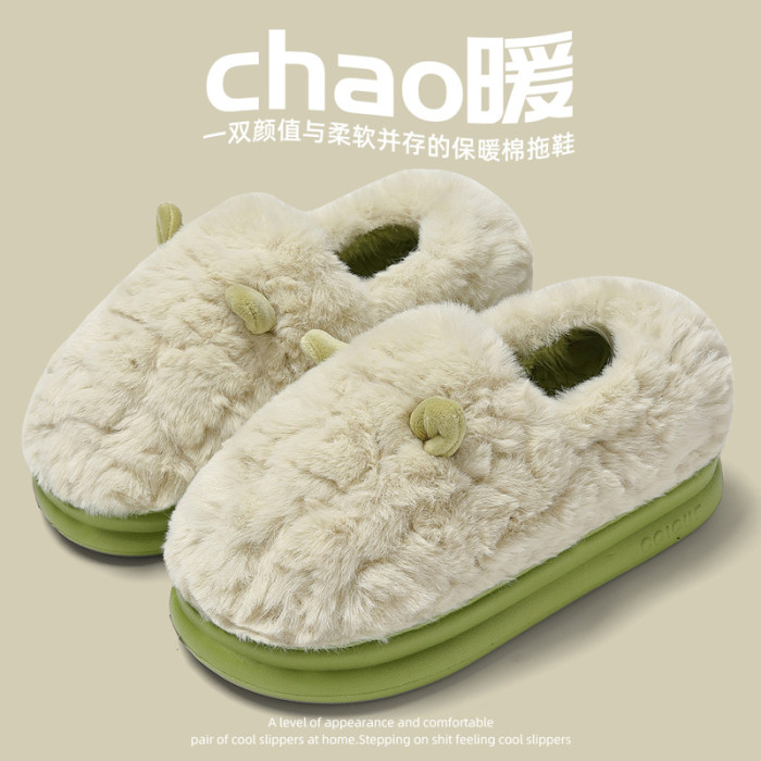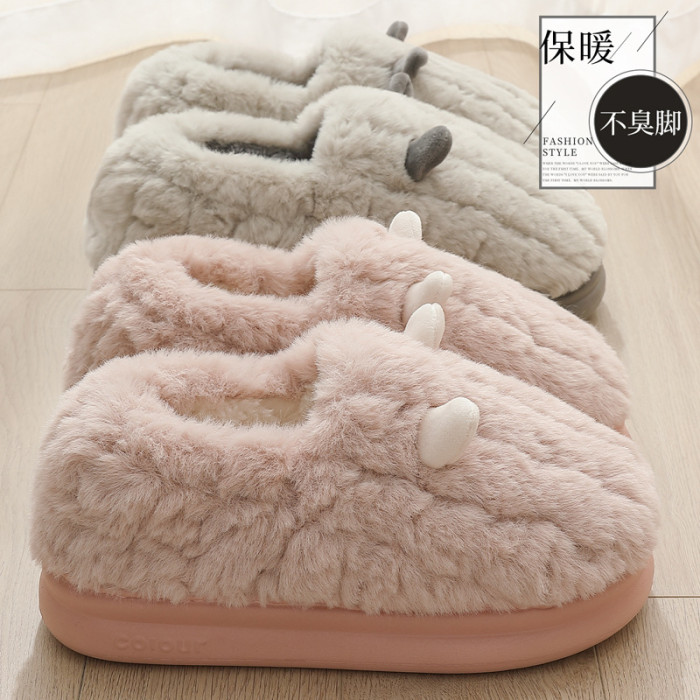 卡通包跟棉拖鞋女冬季可愛耳朵毛絨保暖毛拖鞋防滑家居棉鞋男