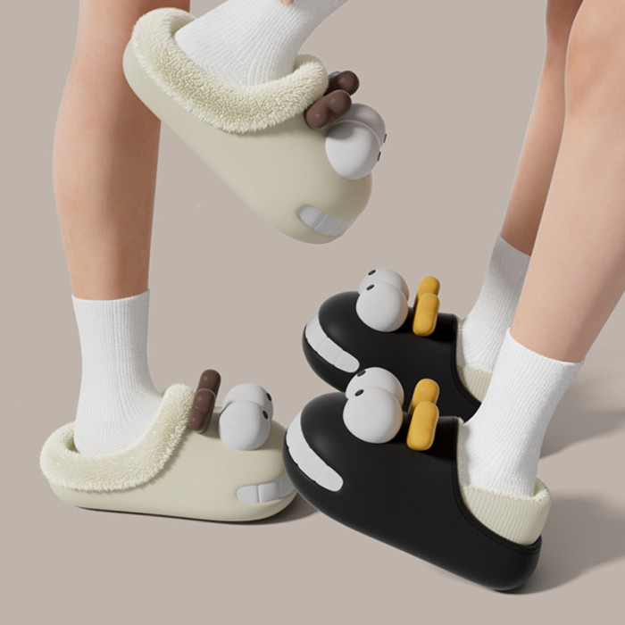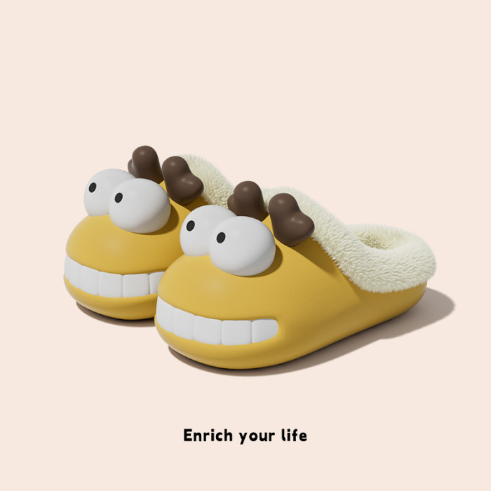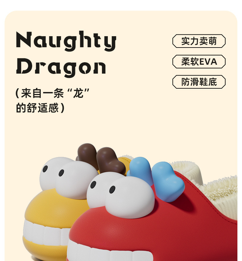 可愛小龍仔棉拖鞋女秋冬季室內居家用月子鞋保暖宿舍包跟棉鞋學生