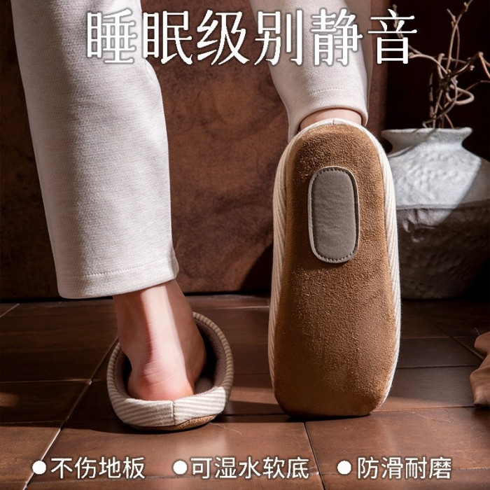 日式家用棉拖鞋男女士秋冬季居家居室內靜音軟底防滑地板月子毛拖
