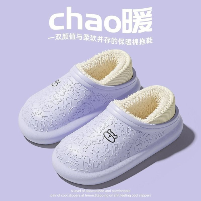 踩屎感棉拖鞋女士冬季室內家居厚底外穿防水孕婦産後月子包跟棉鞋