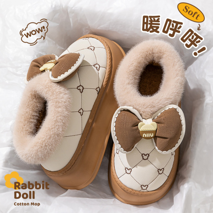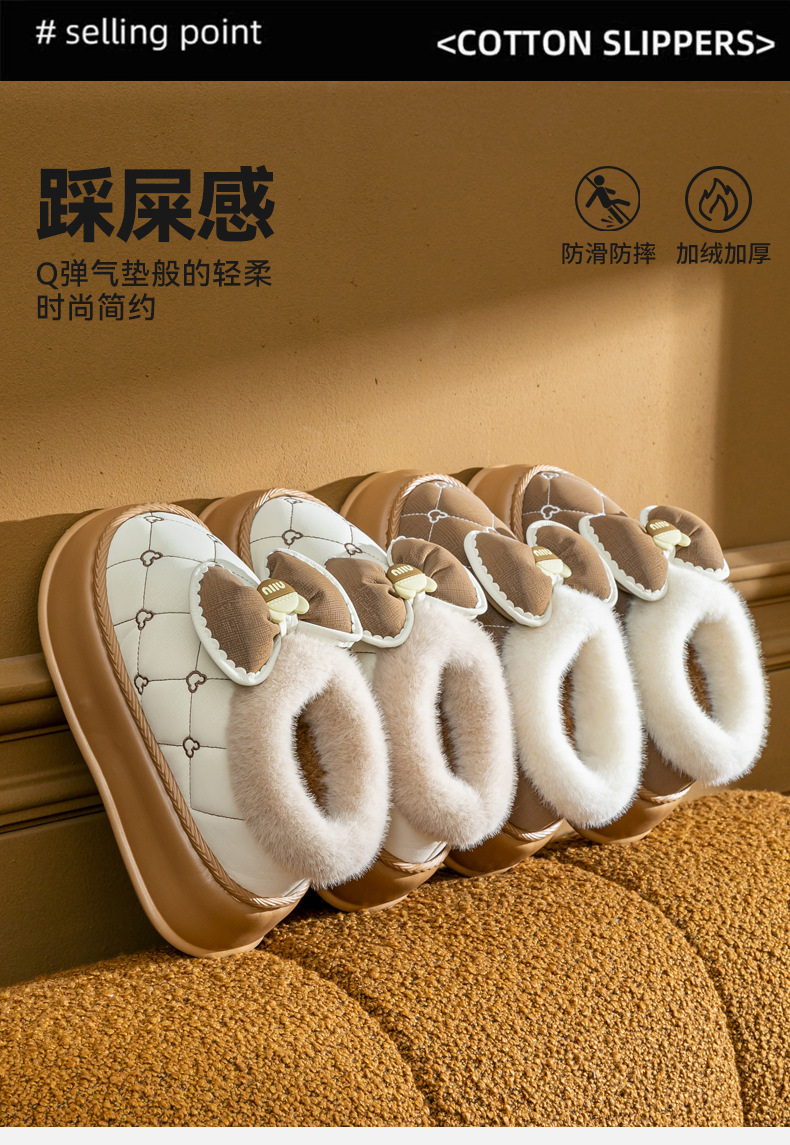 踩屎感棉拖鞋女款冬季2024新款室內家居厚底防滑加絨保暖包跟棉鞋