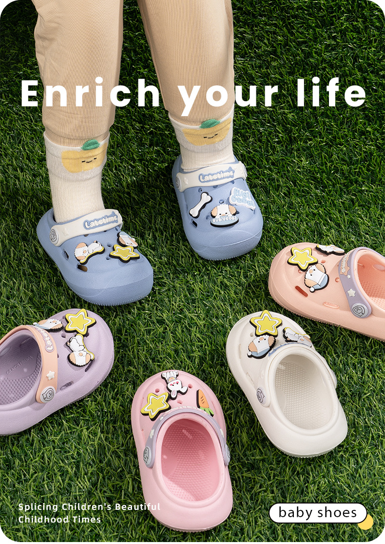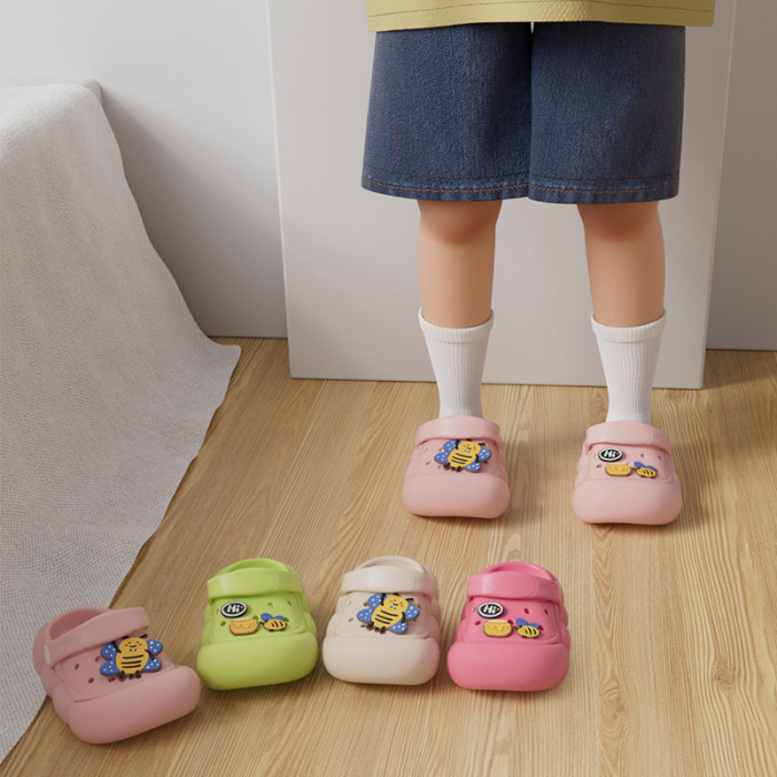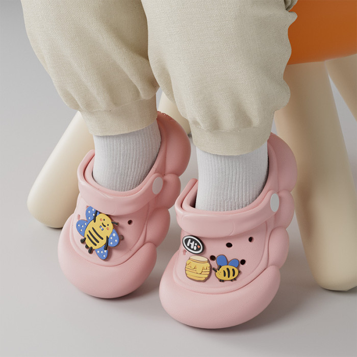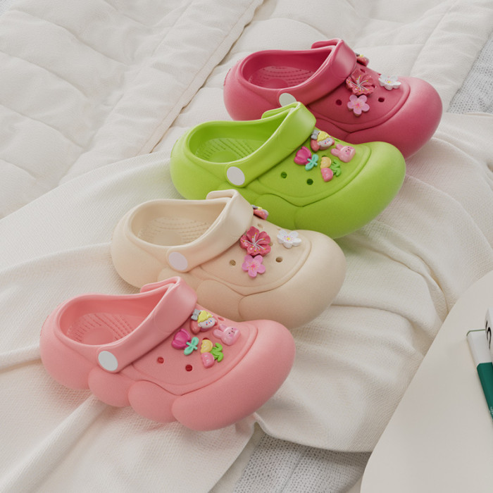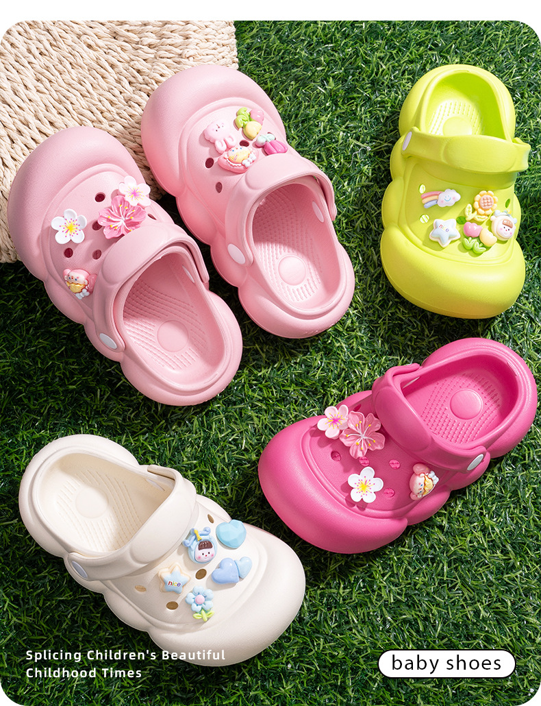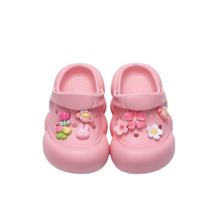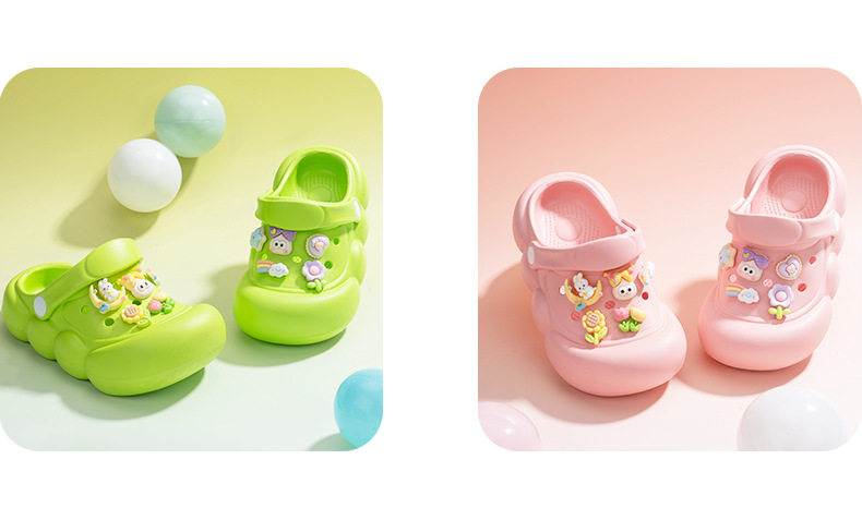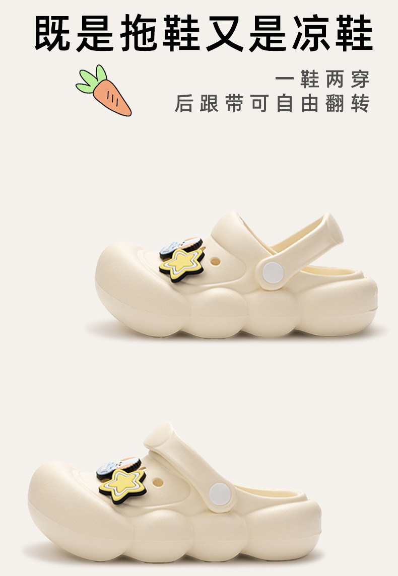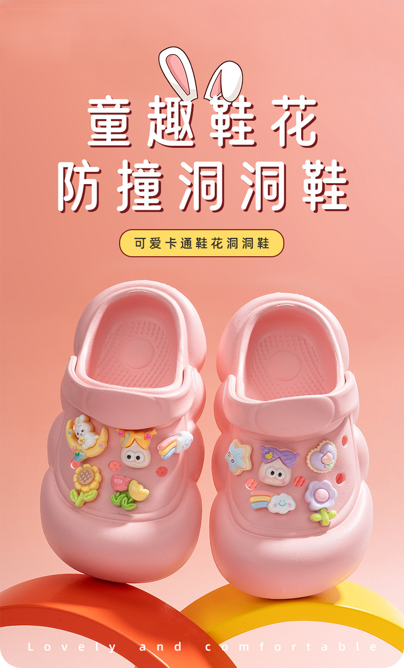 卡通兒童洞洞鞋女夏季外穿防滑中大童小孩防撞包頭綁帶涼拖鞋外穿