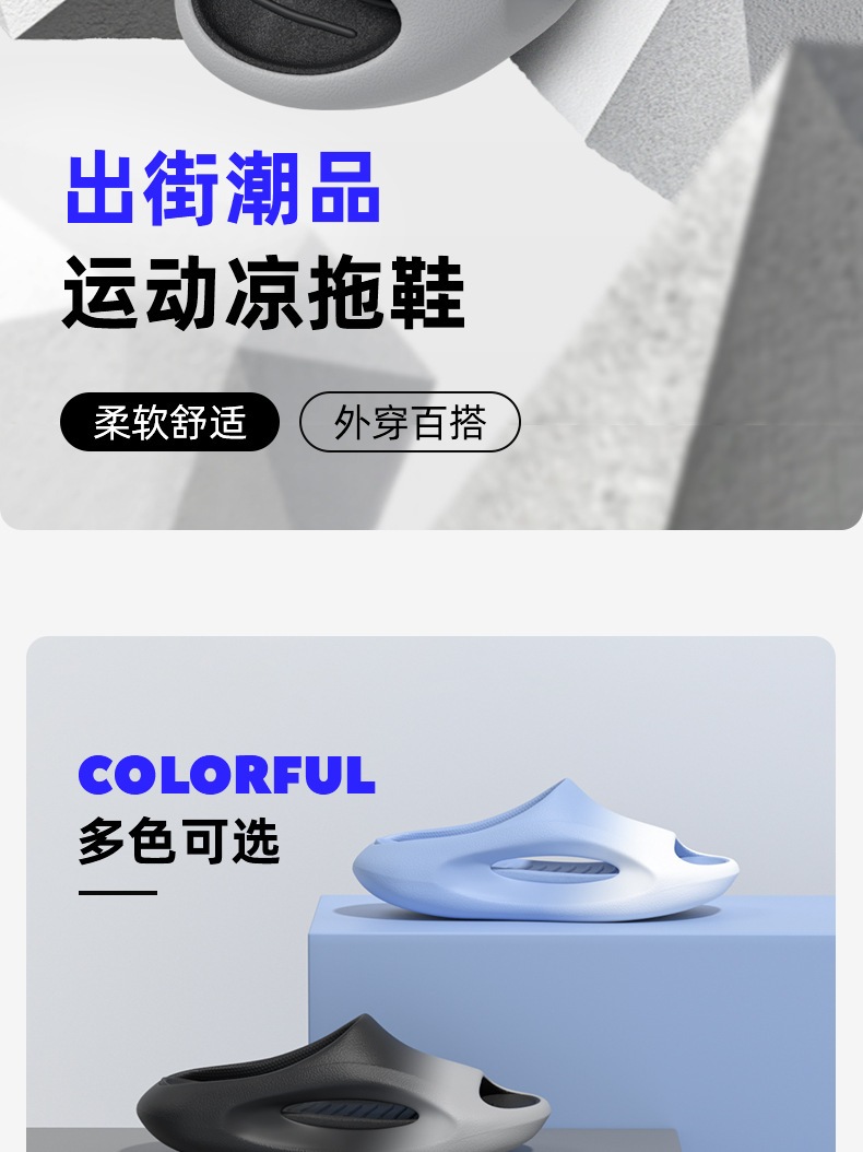 漸變踩屎感拖鞋男士夏季戶外穿運動男款潮流厚底情侶涼拖鞋
