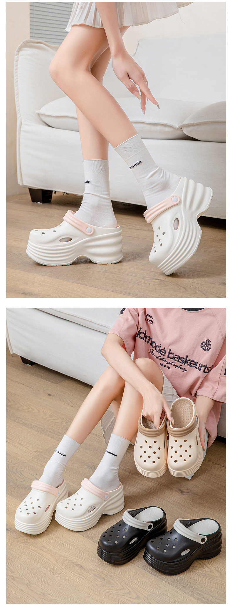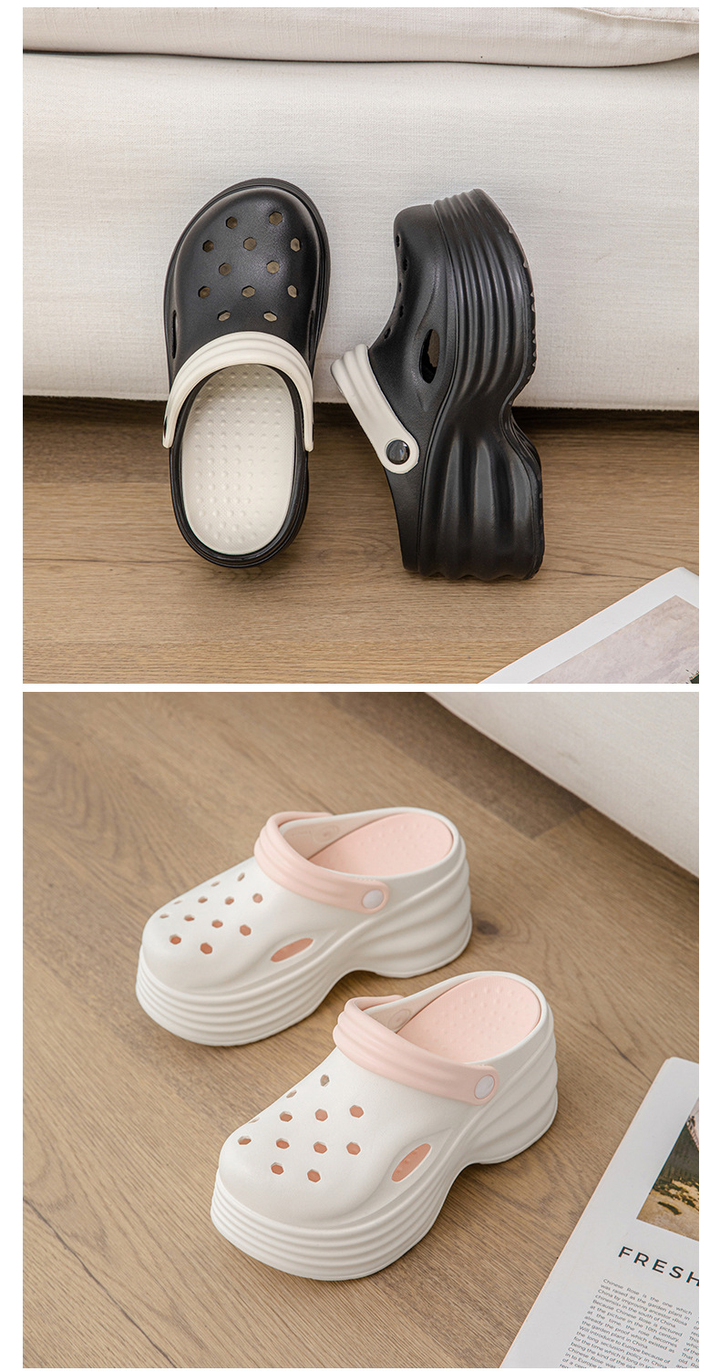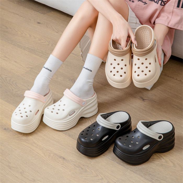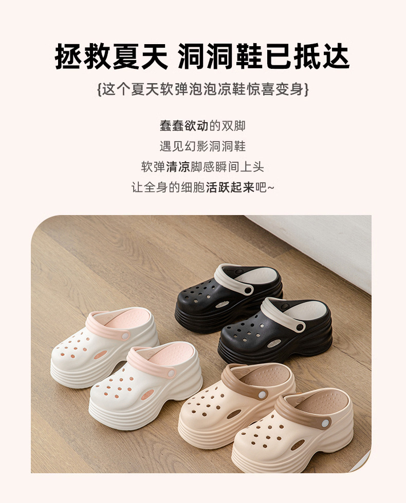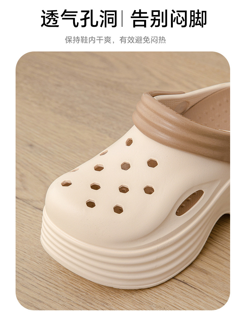 增高洞洞鞋女外穿夏季時尚純色網紅厚底包頭拖鞋松糕跟沙灘涼拖鞋
