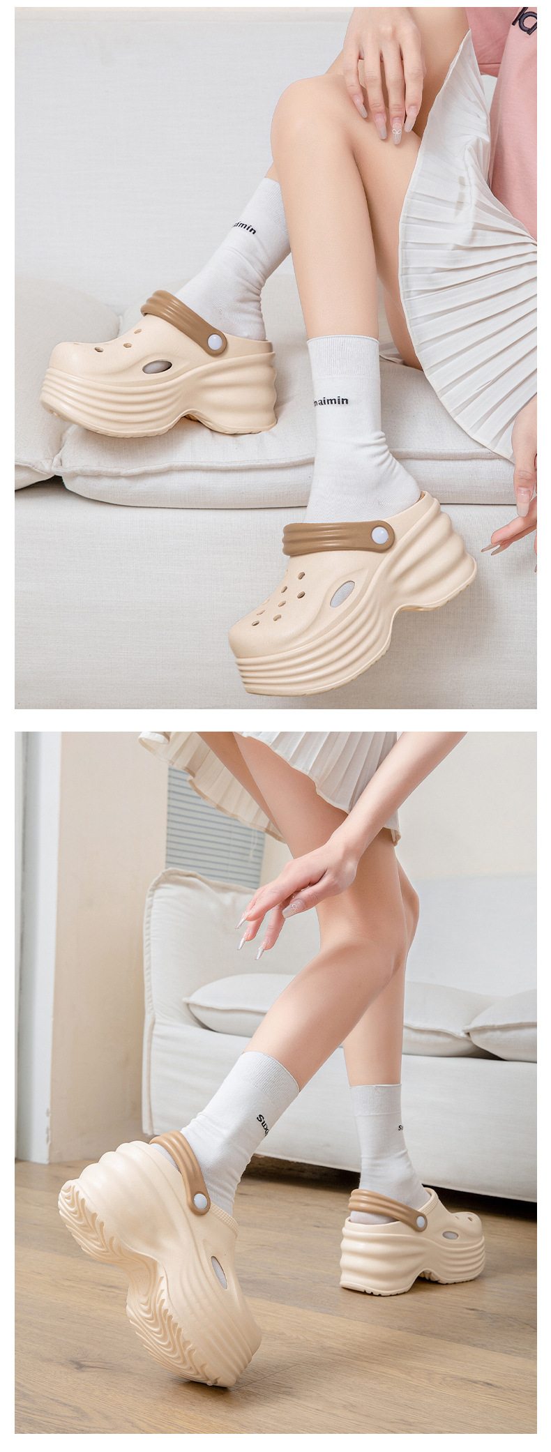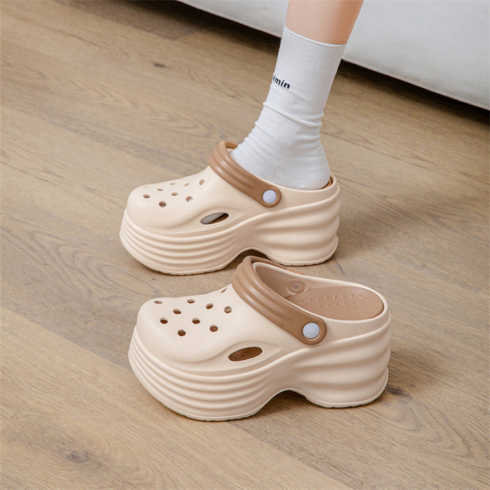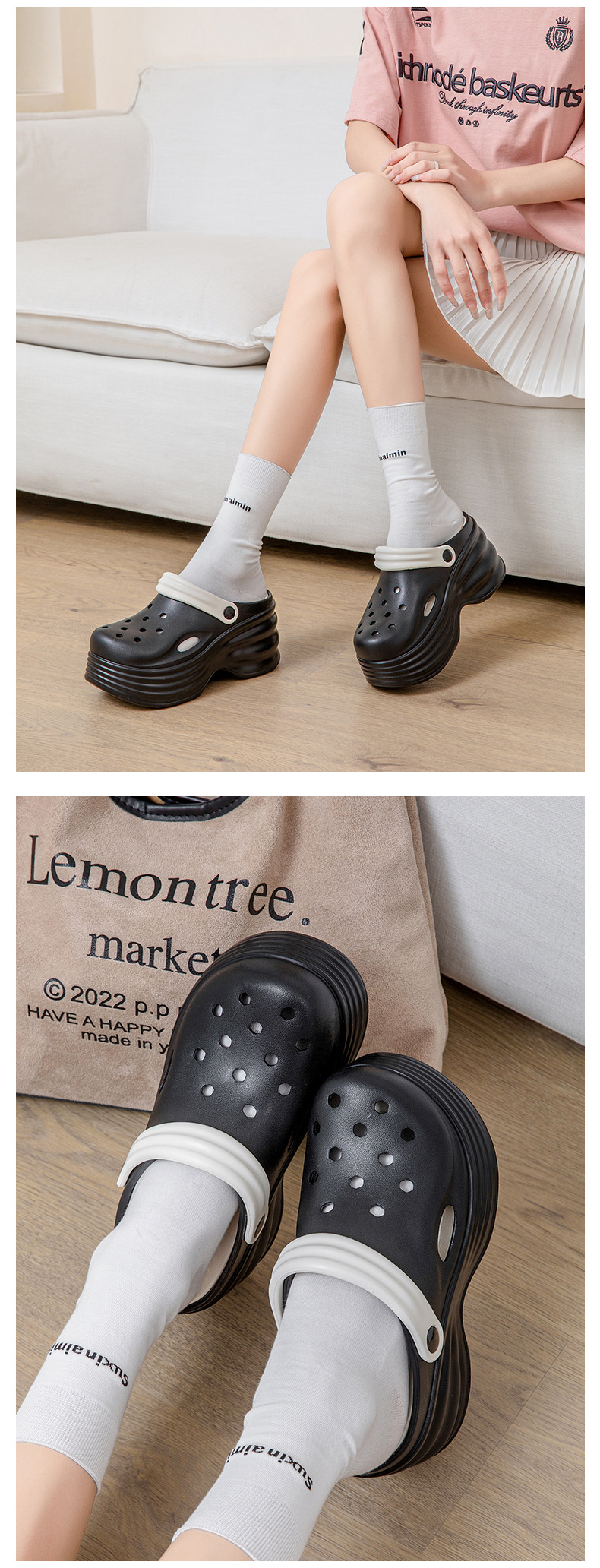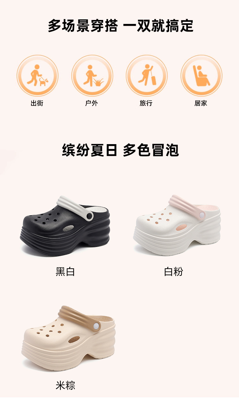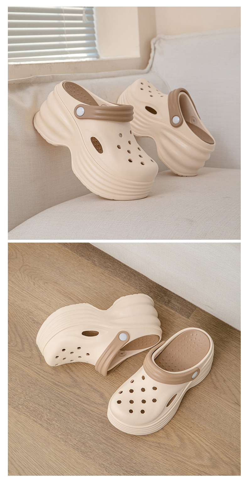 增高洞洞鞋女外穿夏季時尚純色網紅厚底包頭拖鞋松糕跟沙灘涼拖鞋