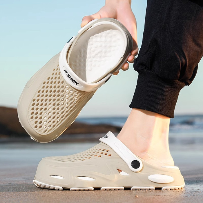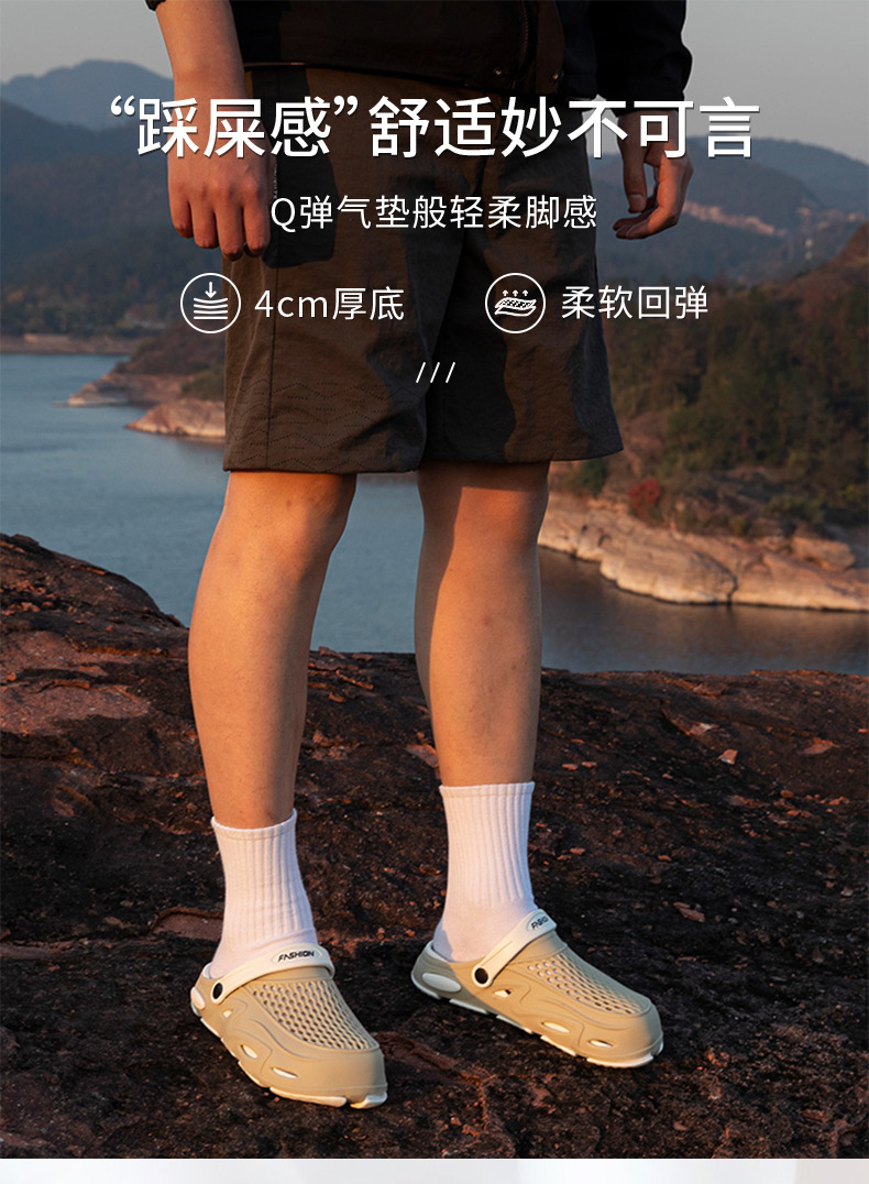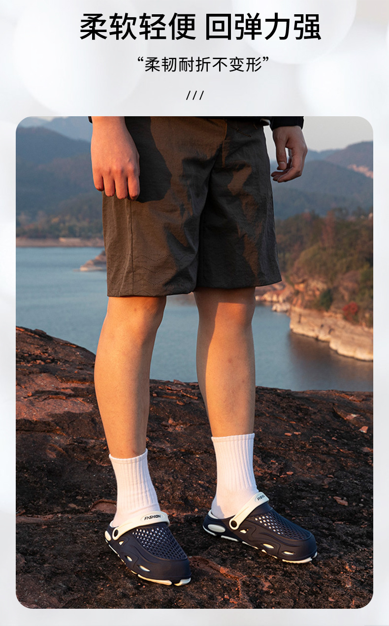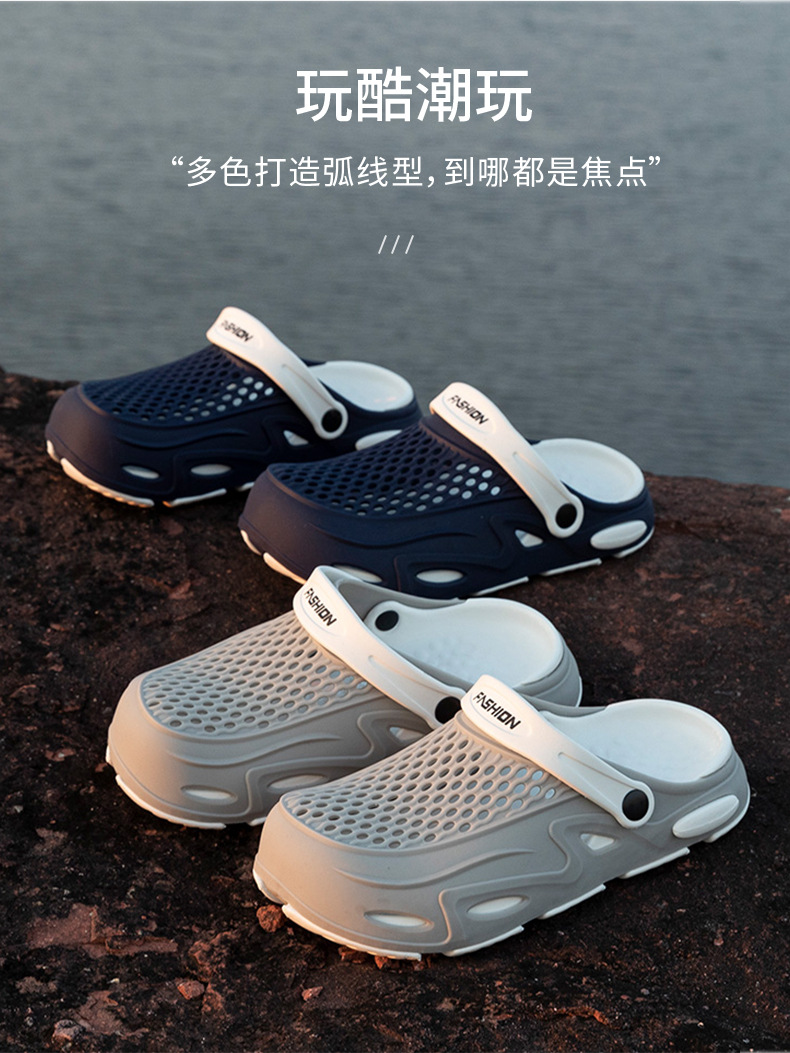 男士涼鞋夏季外穿透氣2025新款輕便軟底包頭洞洞鞋兩用沙灘拖鞋男