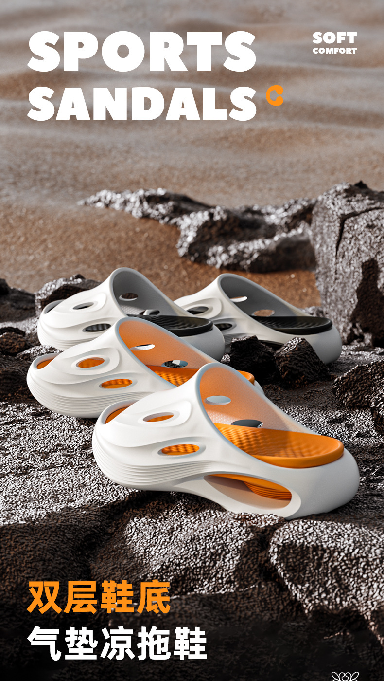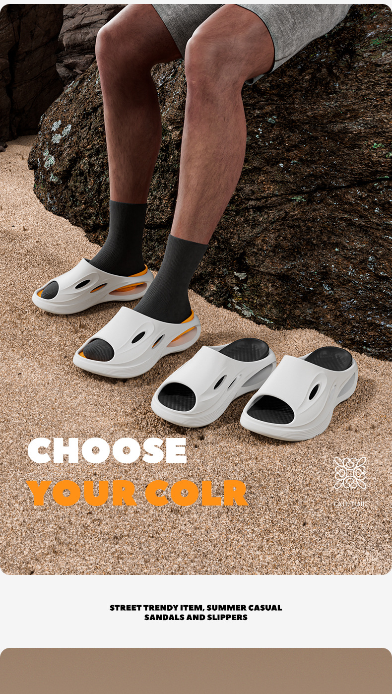 潮流氣墊增高運動拖鞋男士夏季防滑雙色EVA厚底情侶涼拖鞋女外穿