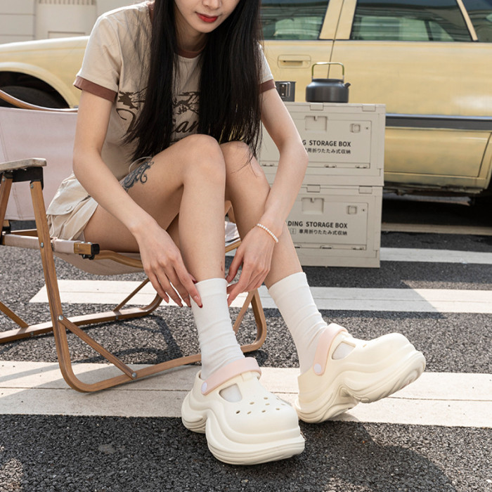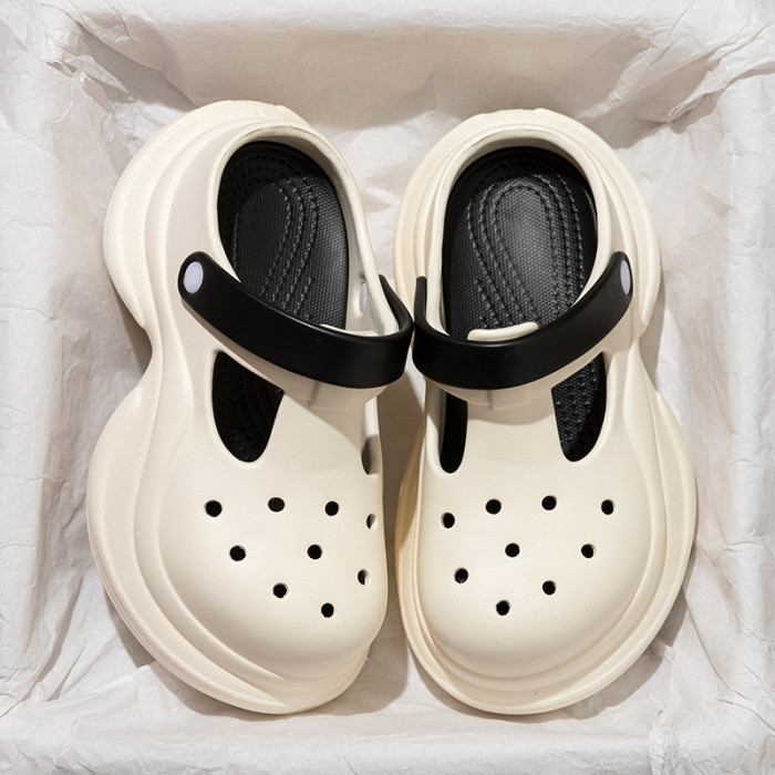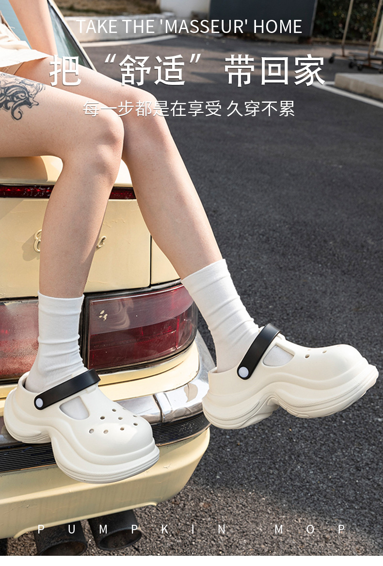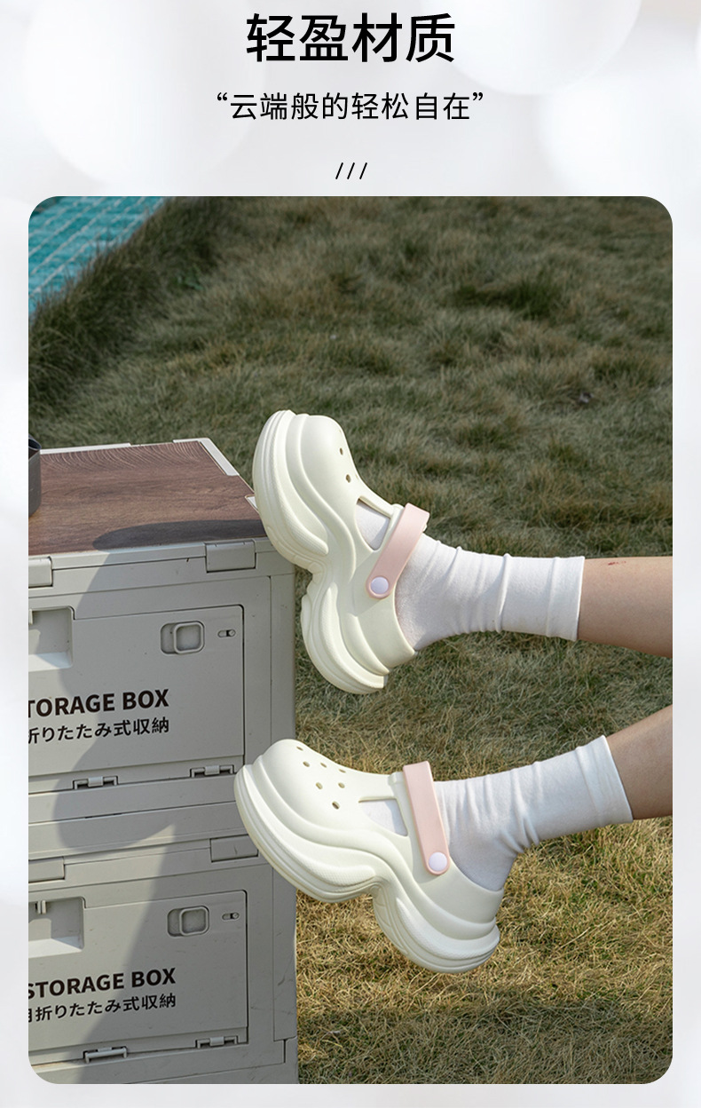 厚底洞洞鞋女2025夏季新款踩屎感外穿增高防滑沙灘包頭涼拖鞋女士