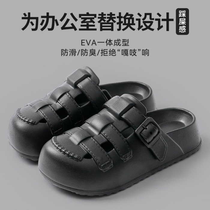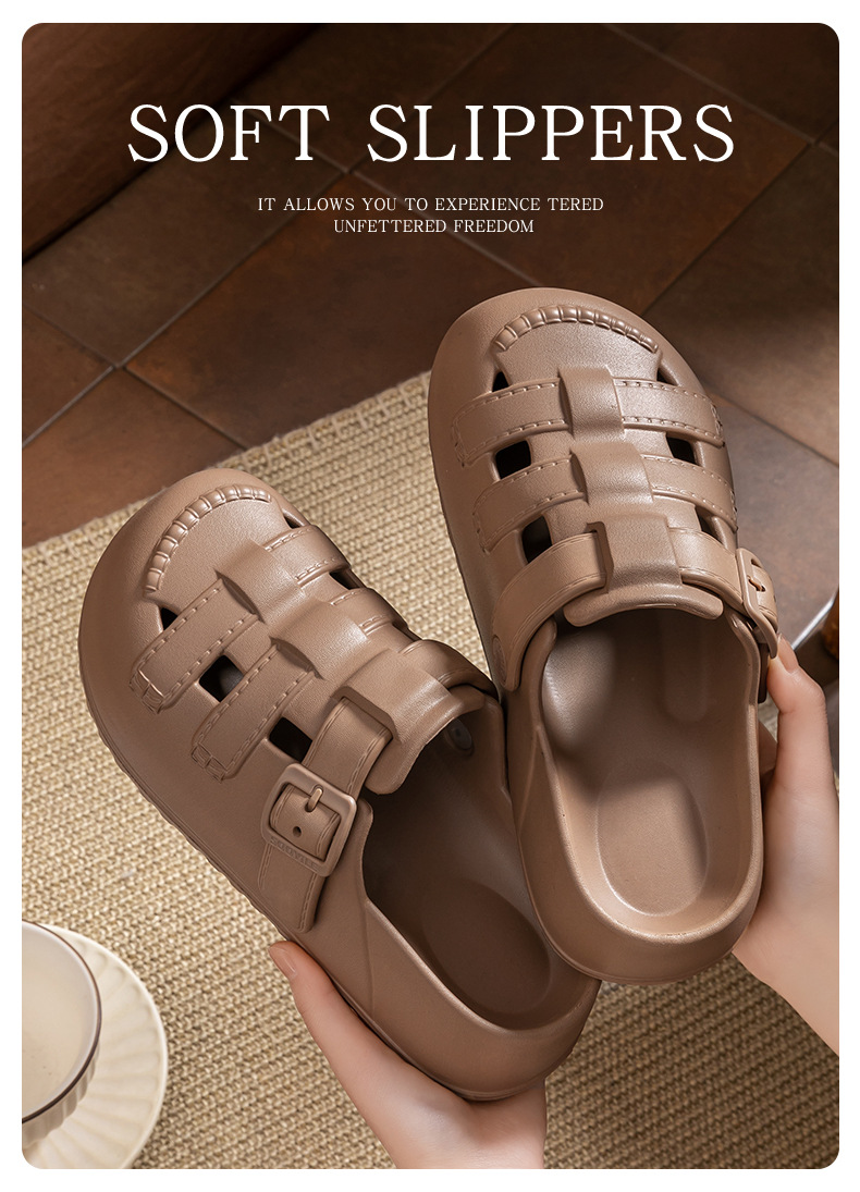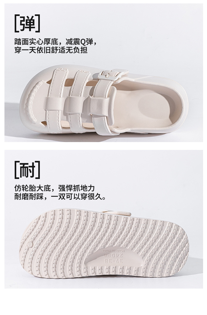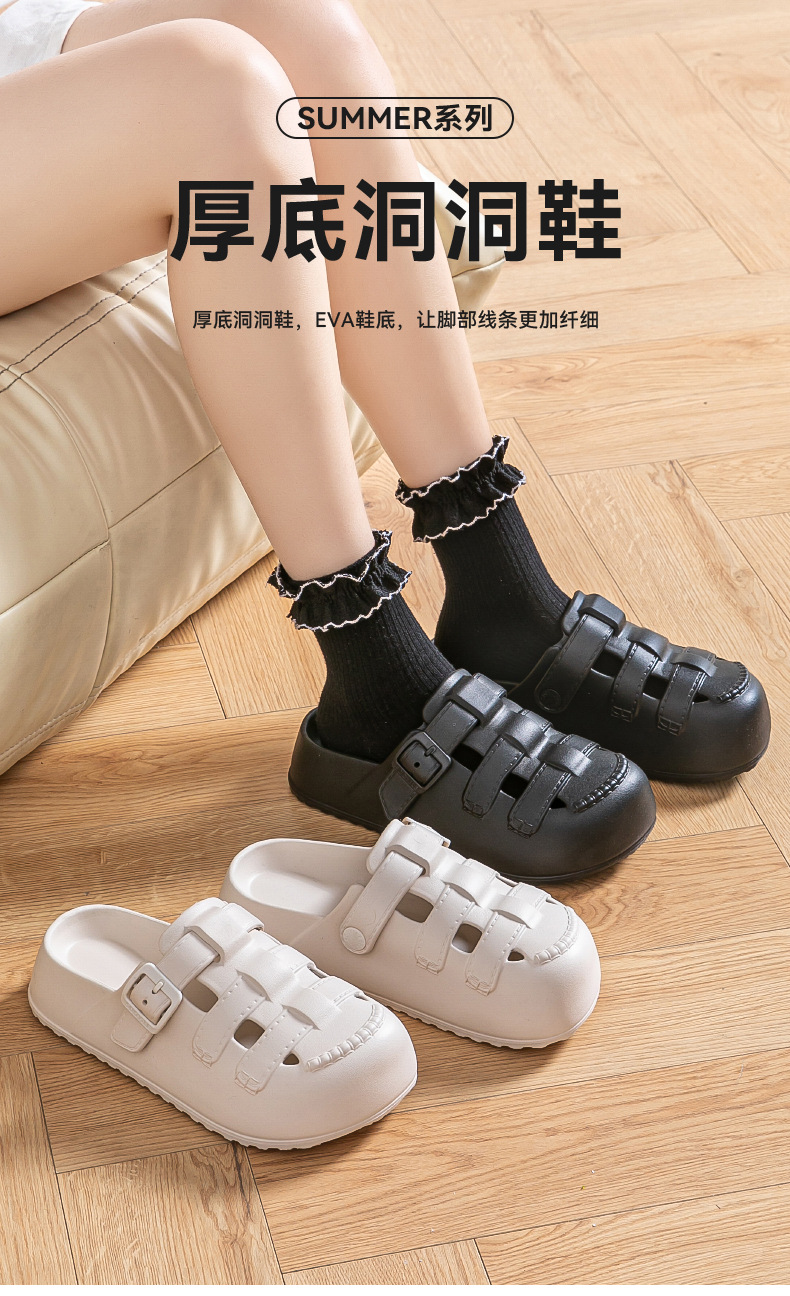 新款夏季包頭鏤空羅馬洞洞鞋女外穿平底涼拖鞋踩屎感防滑沙灘鞋女