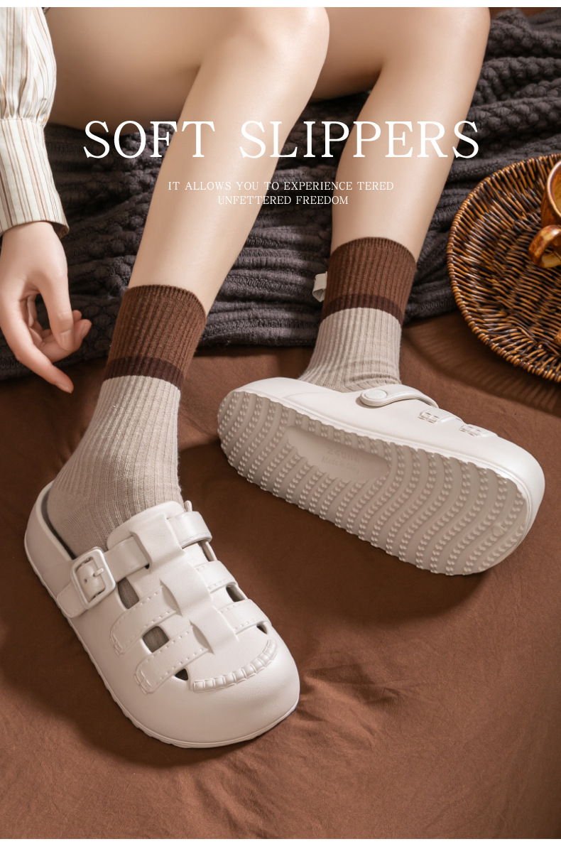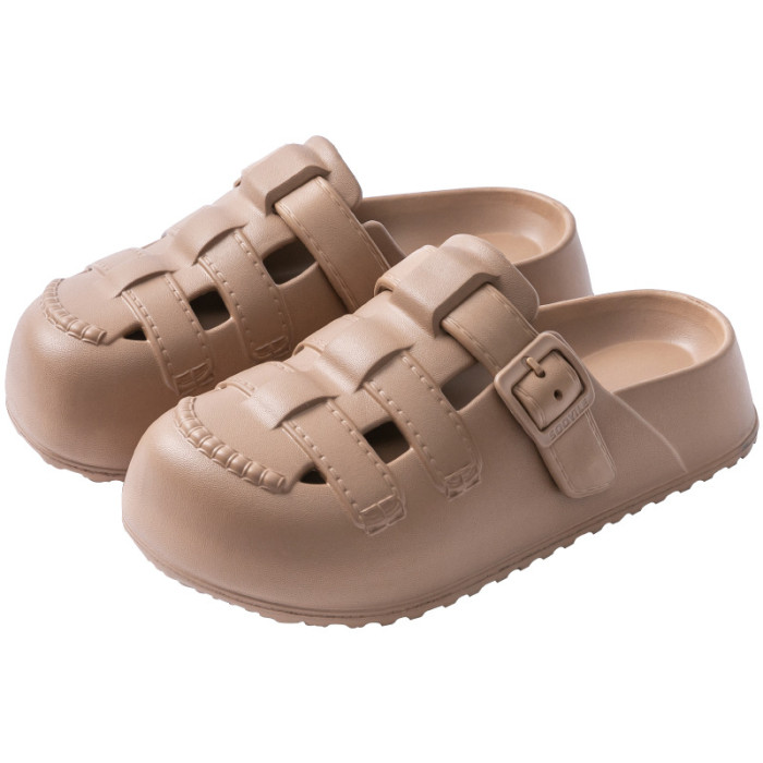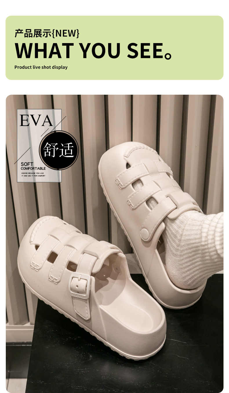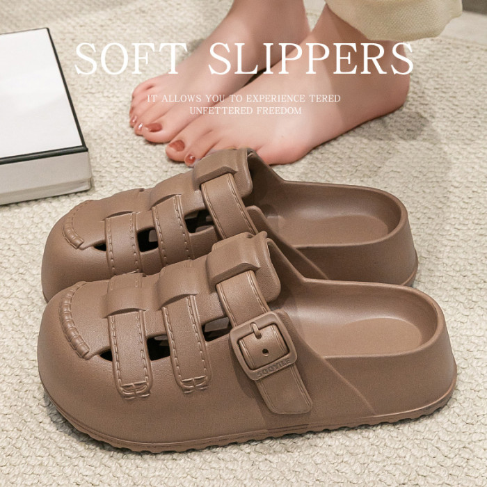 新款夏季包頭鏤空羅馬洞洞鞋女外穿平底涼拖鞋踩屎感防滑沙灘鞋女