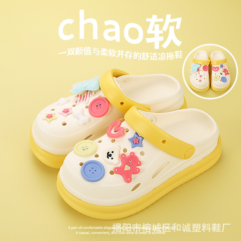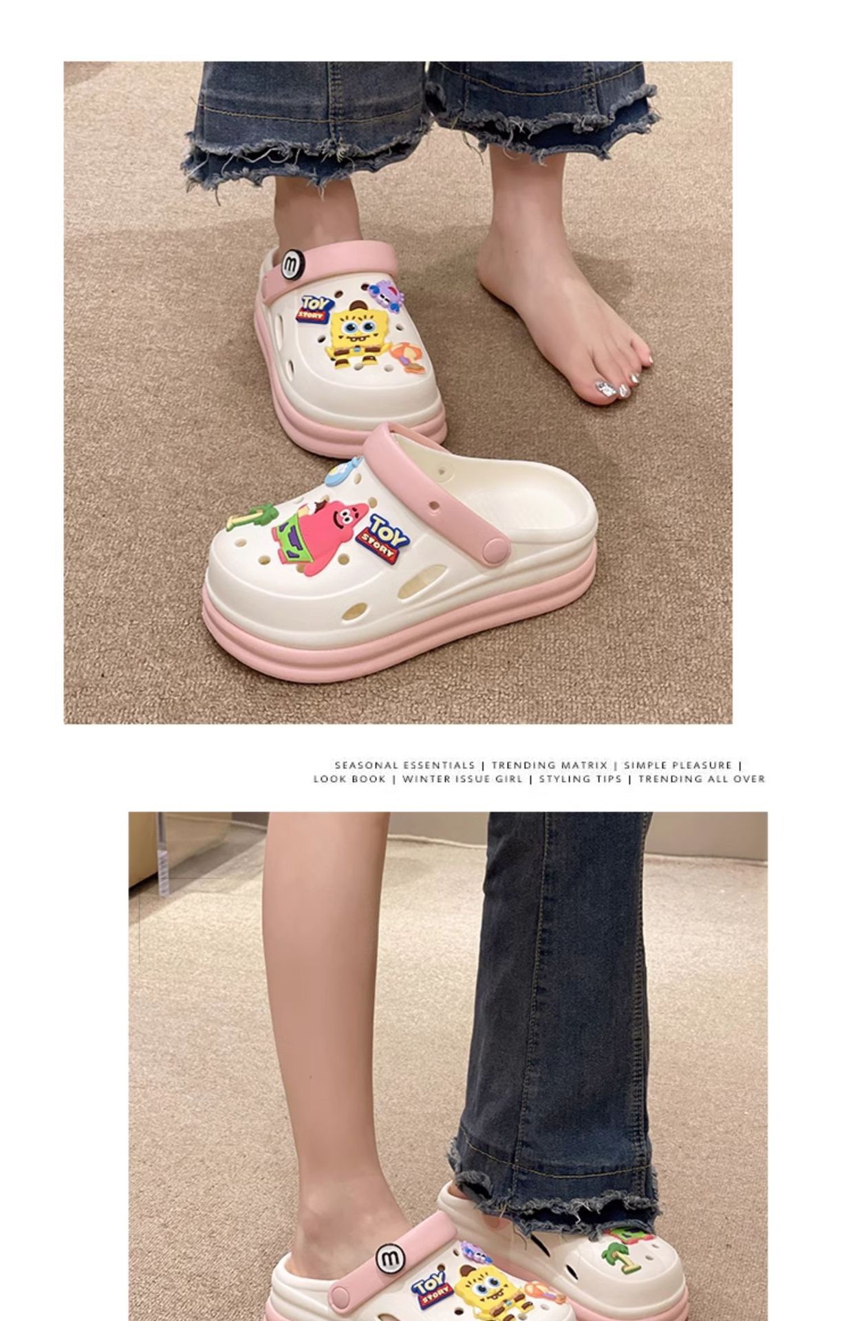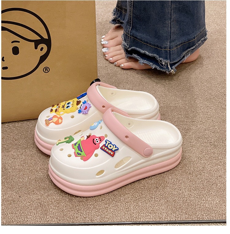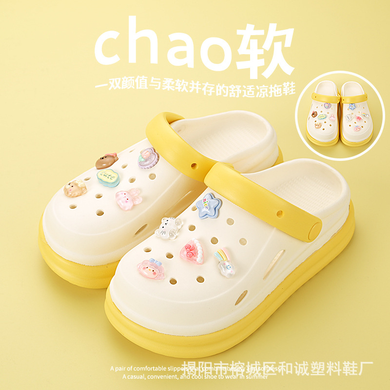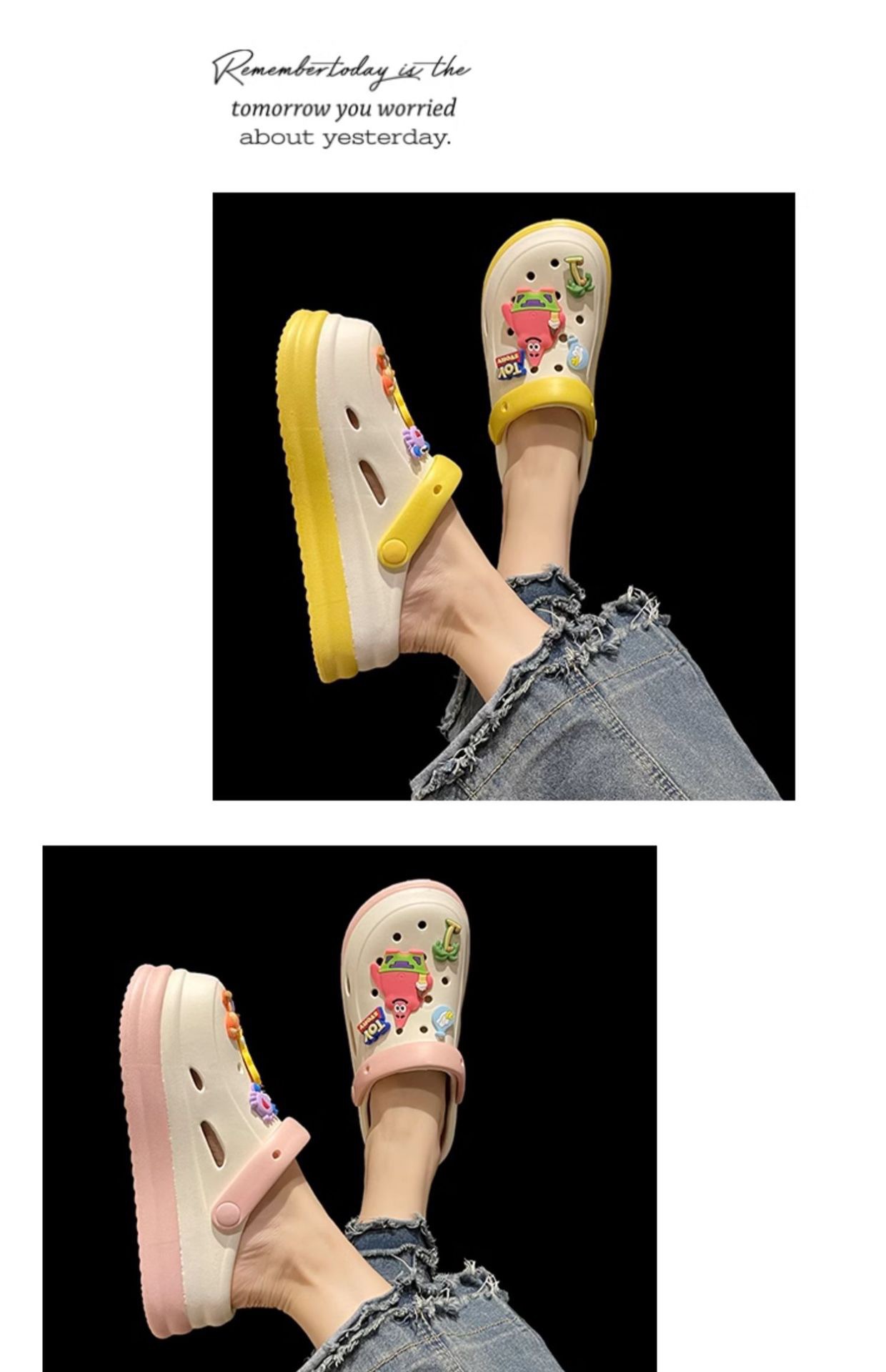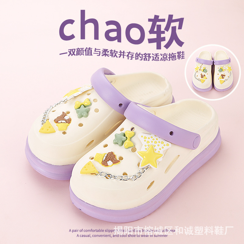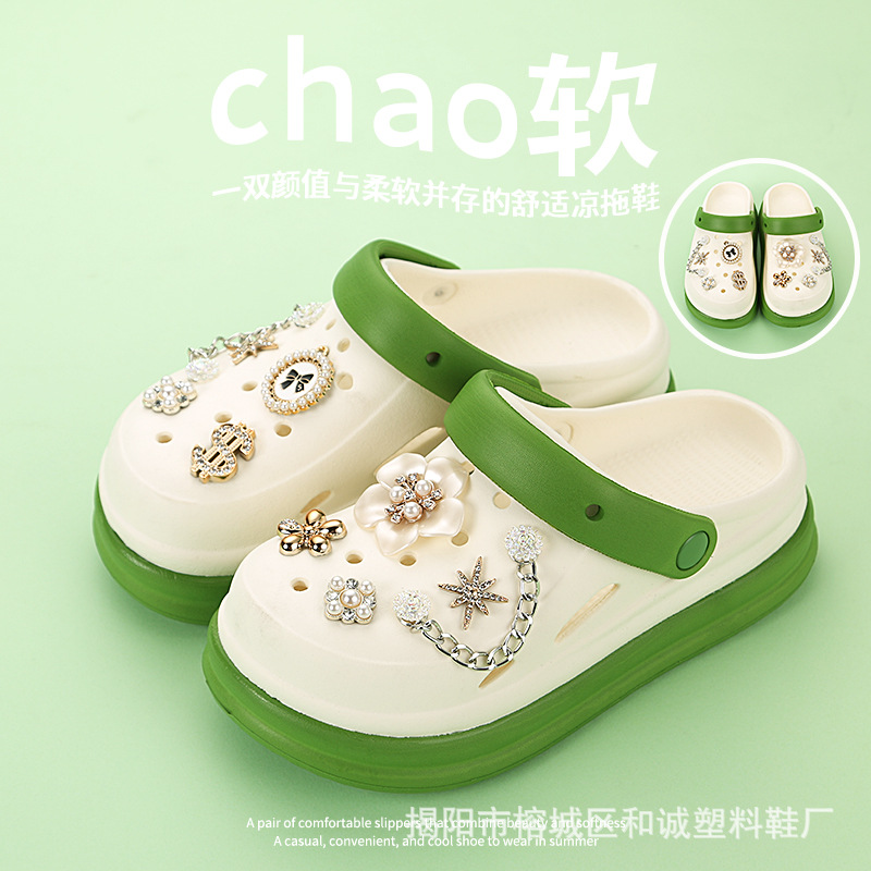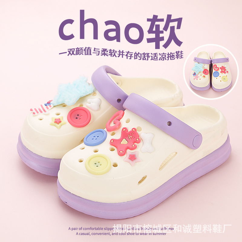 卡通可愛花朵配飾洞洞鞋女夏季外穿2025新款厚底增高包頭涼拖鞋