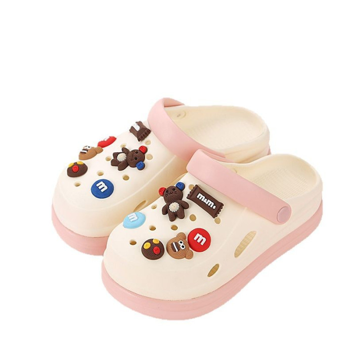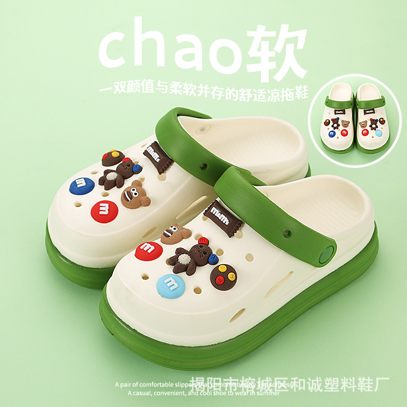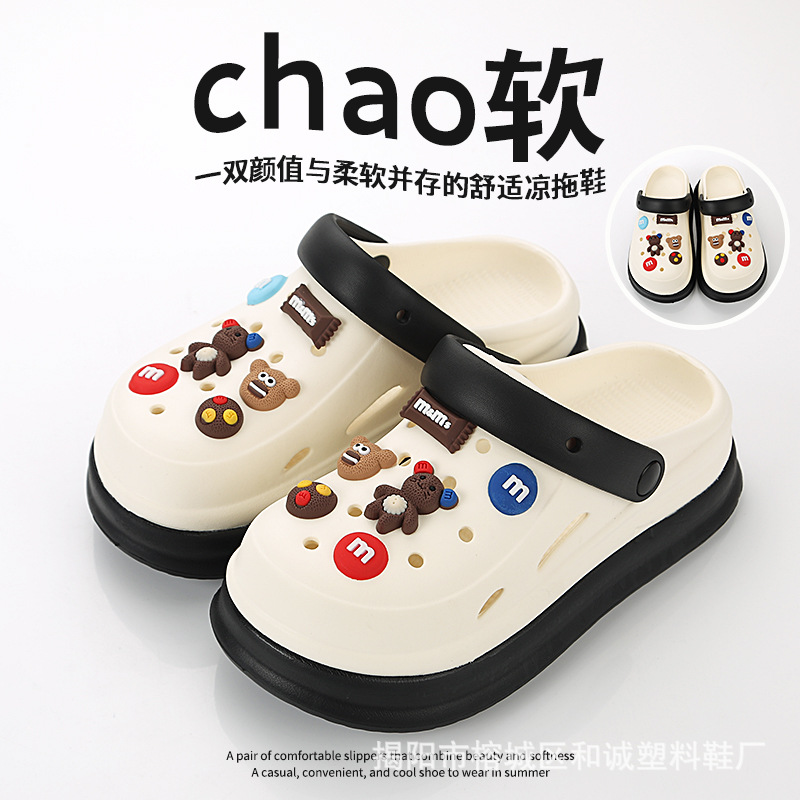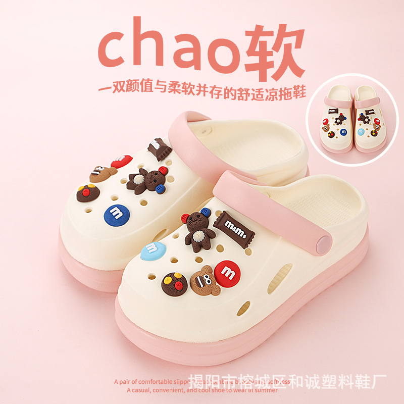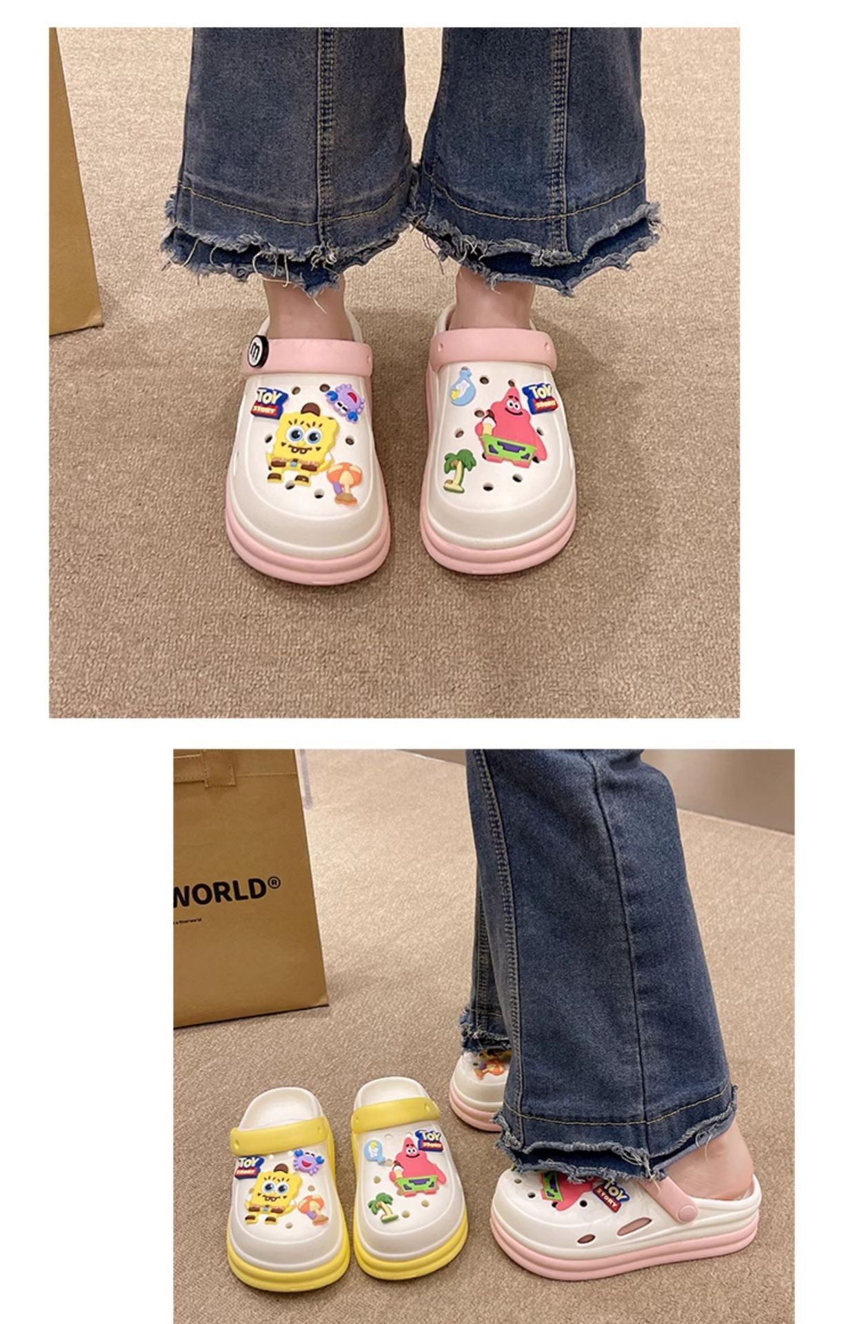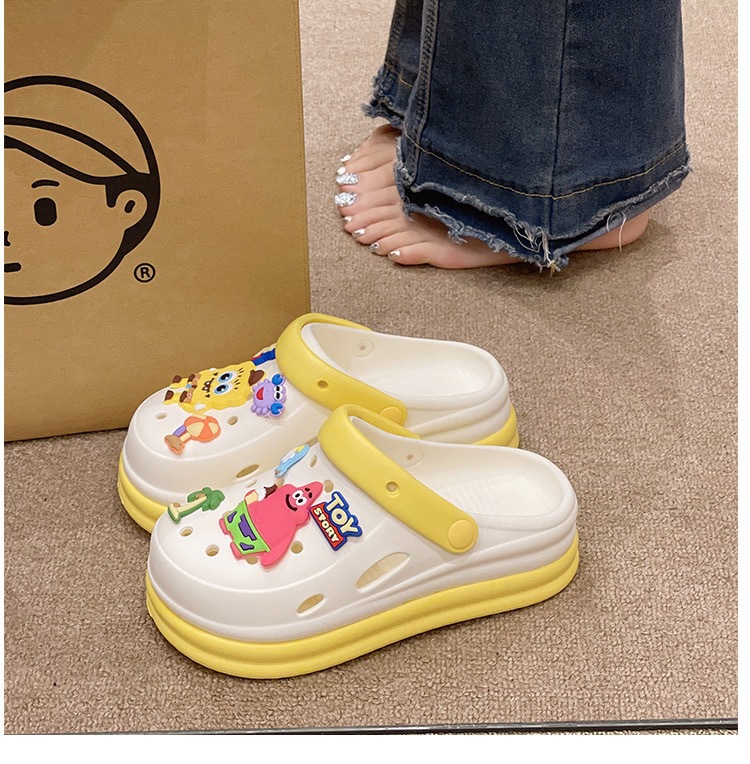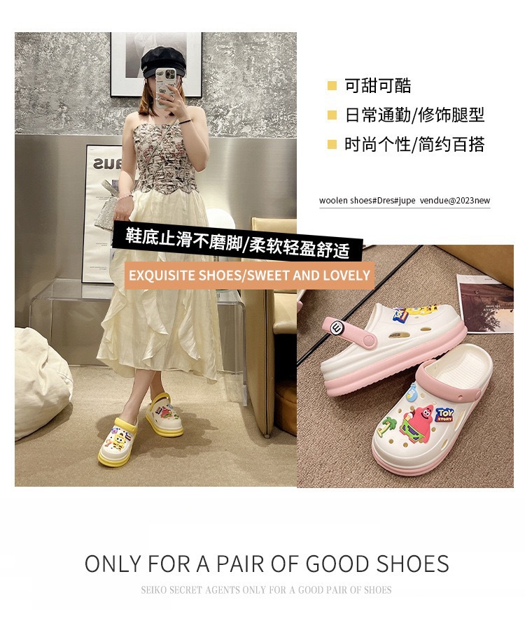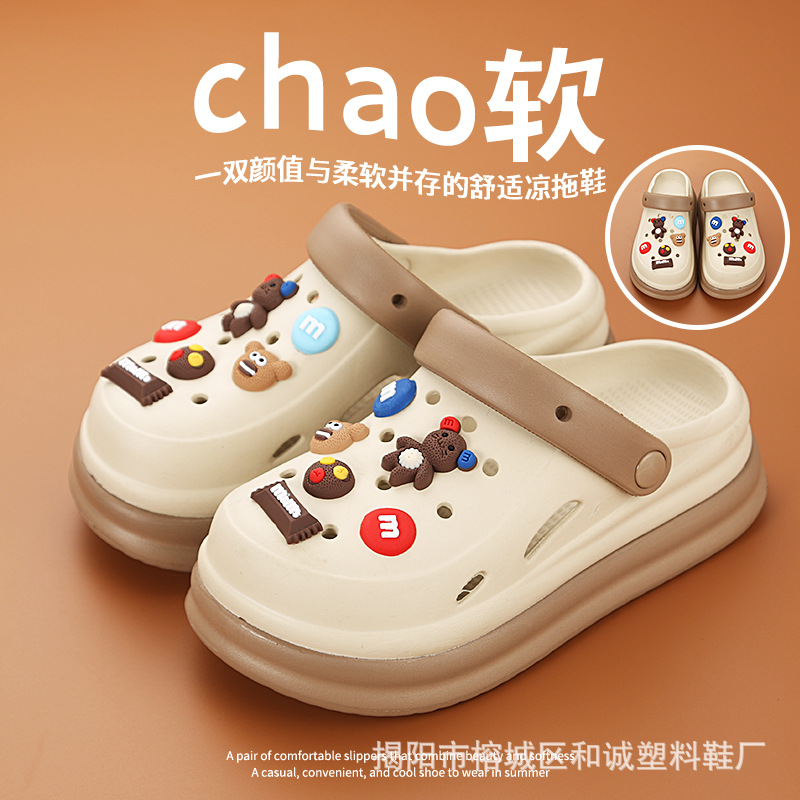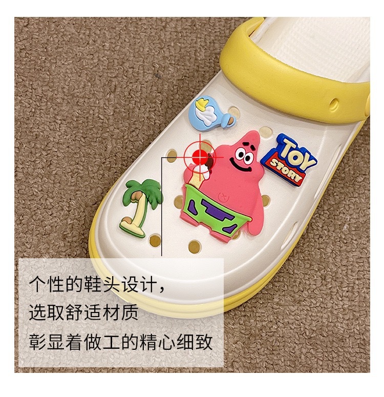卡通可愛花朵配飾洞洞鞋女夏季外穿2025新款厚底增高包頭涼拖鞋