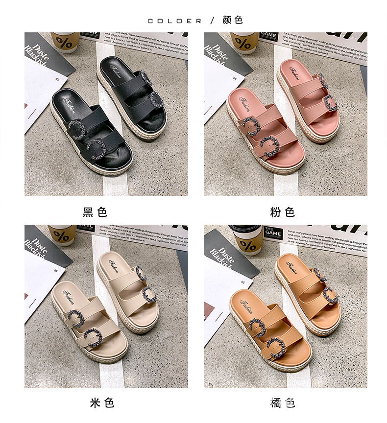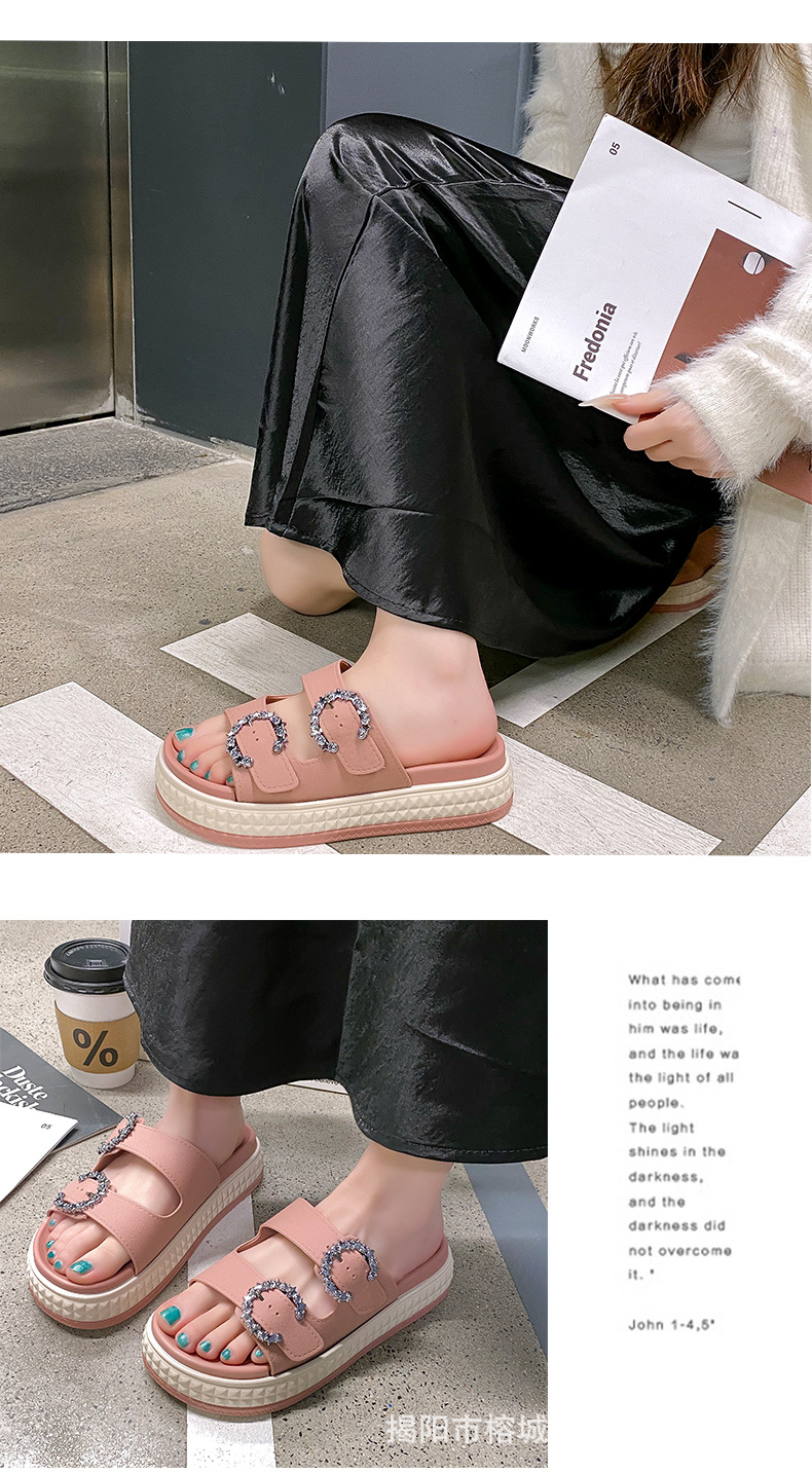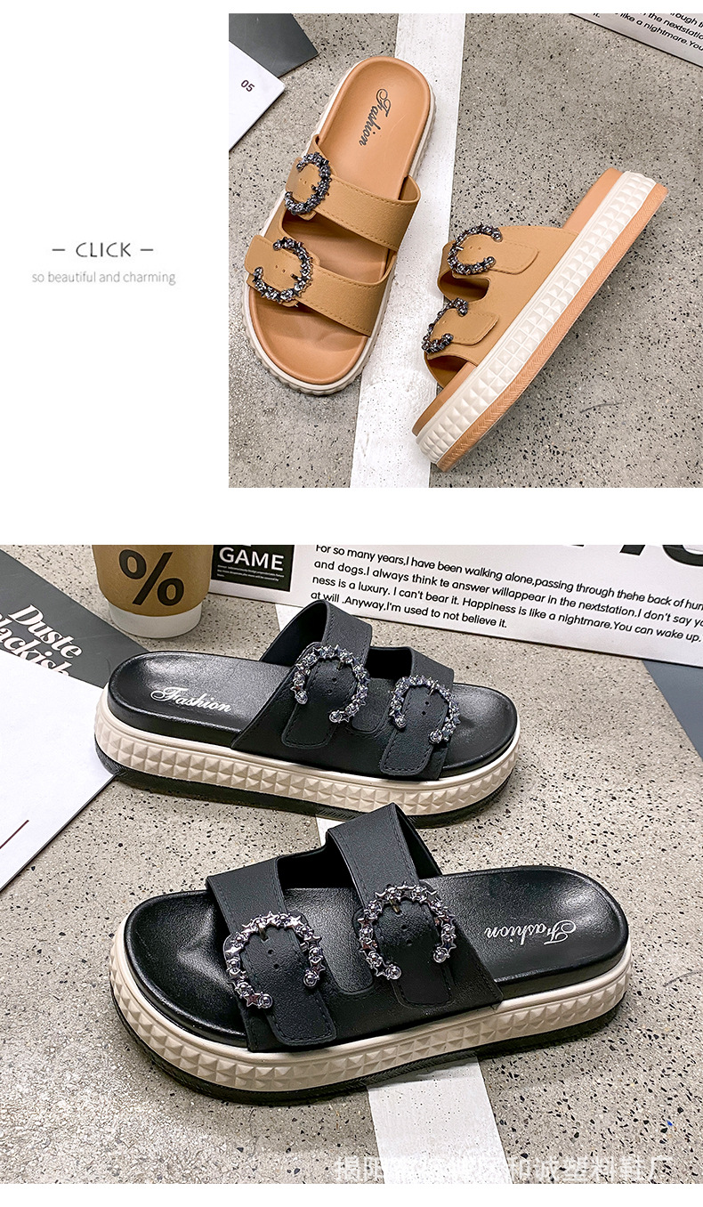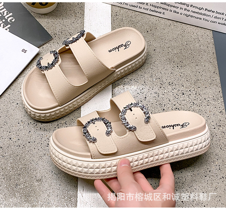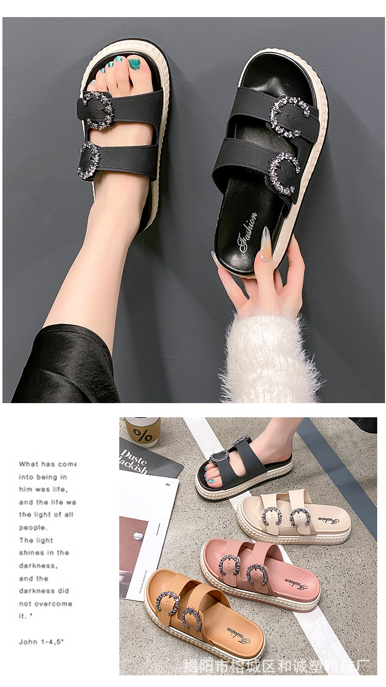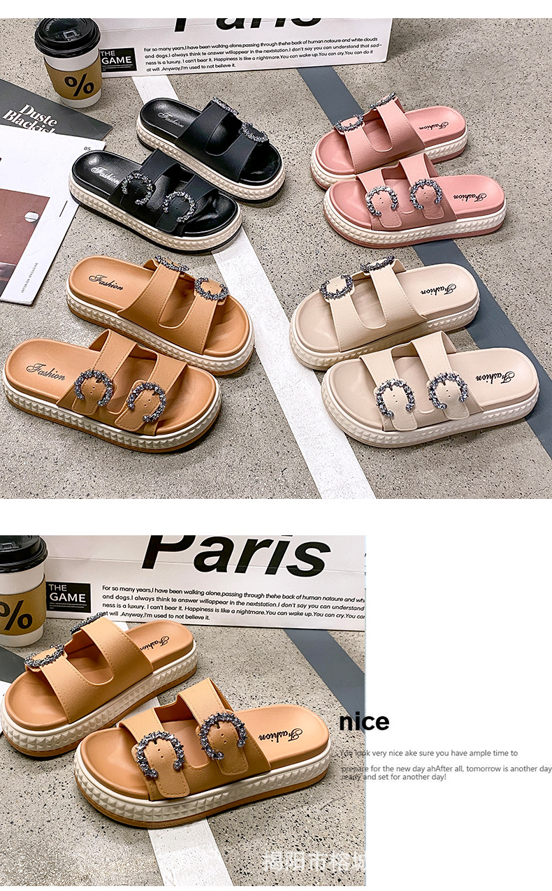 夏季厚底拖鞋女外穿新款韓版時尚搭釦平底涼鞋圓頭露趾沙灘鞋