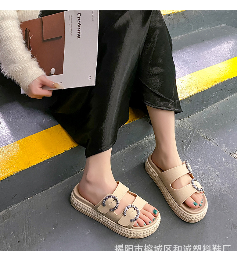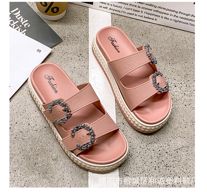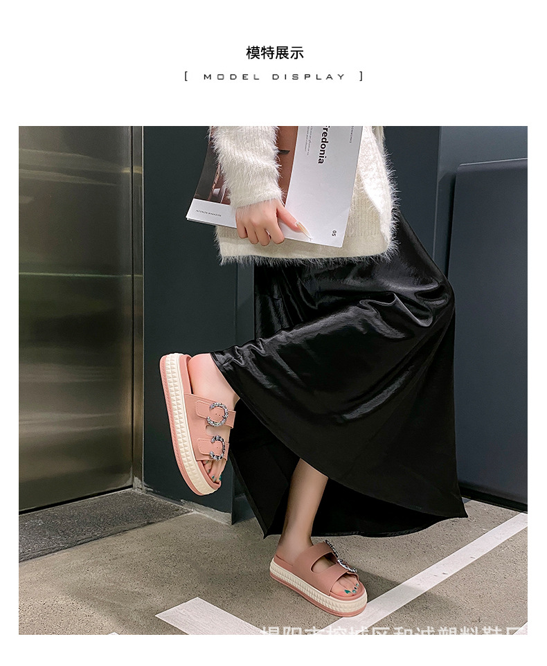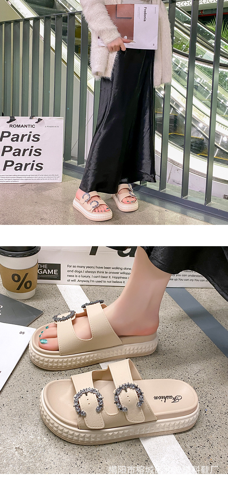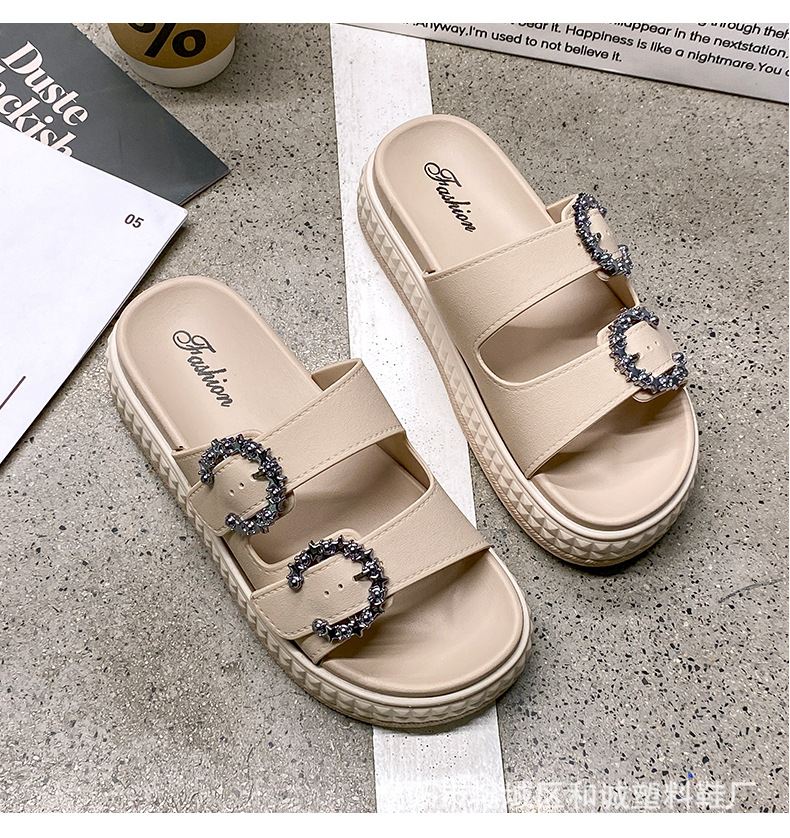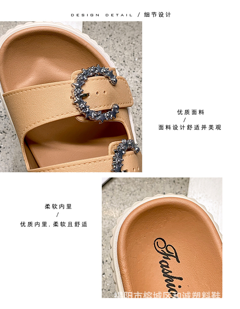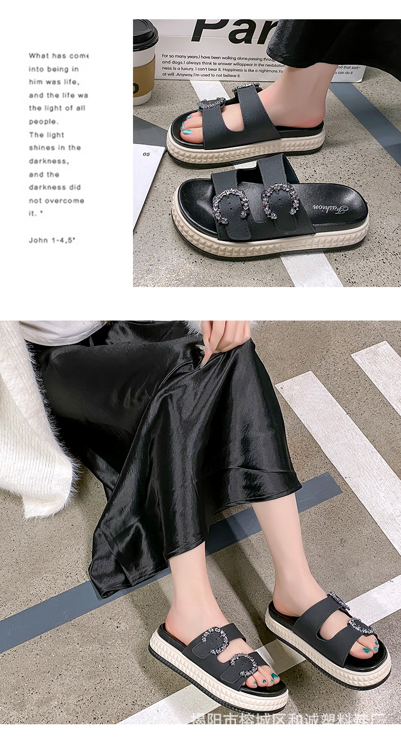 夏季厚底拖鞋女外穿新款韓版時尚搭釦平底涼鞋圓頭露趾沙灘鞋