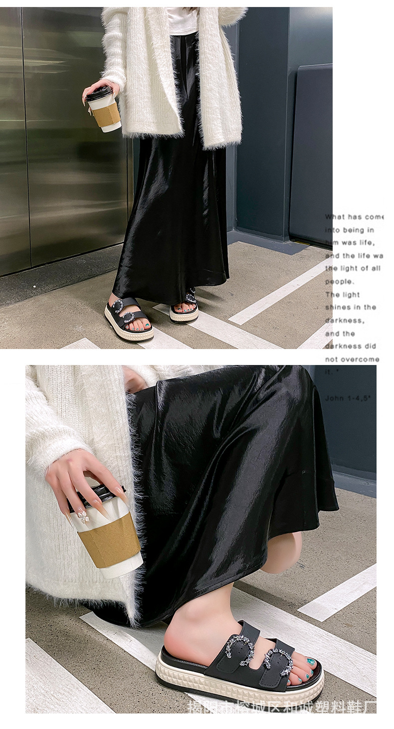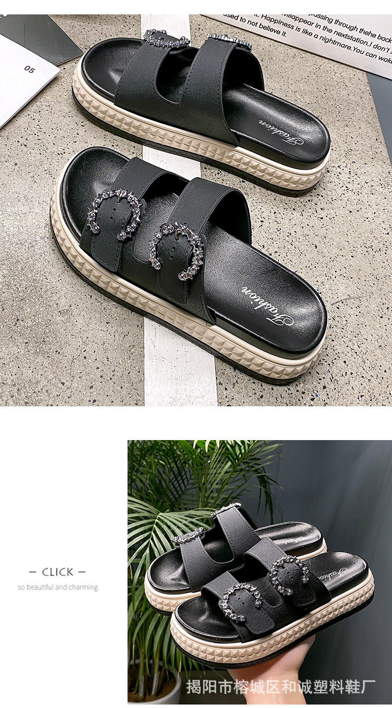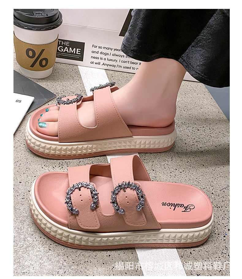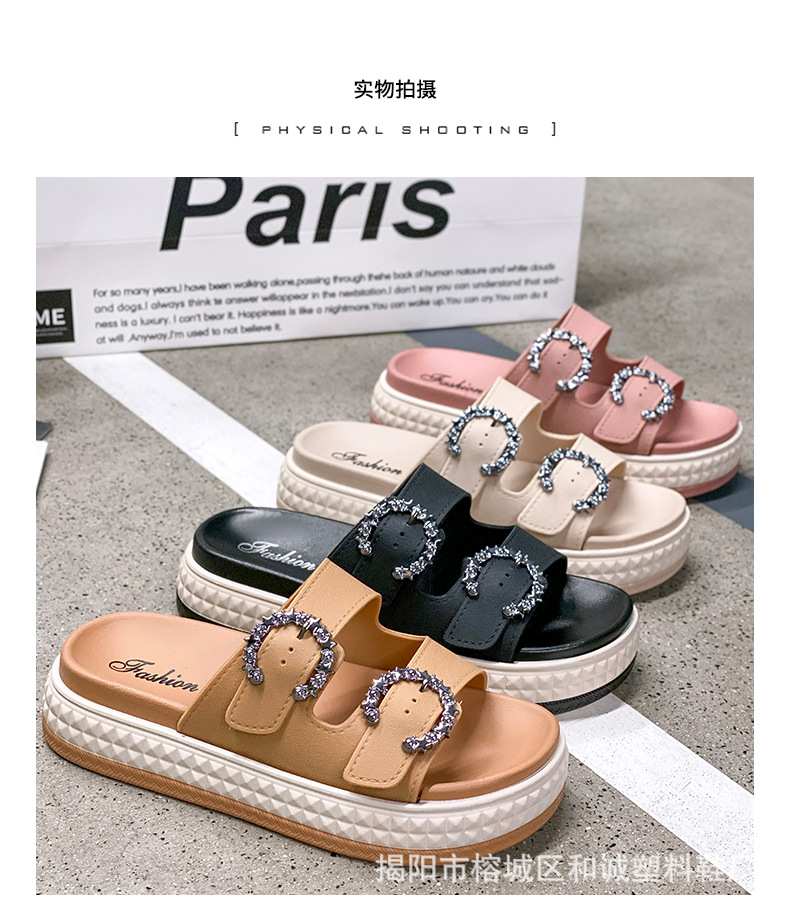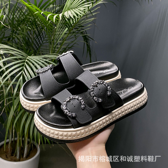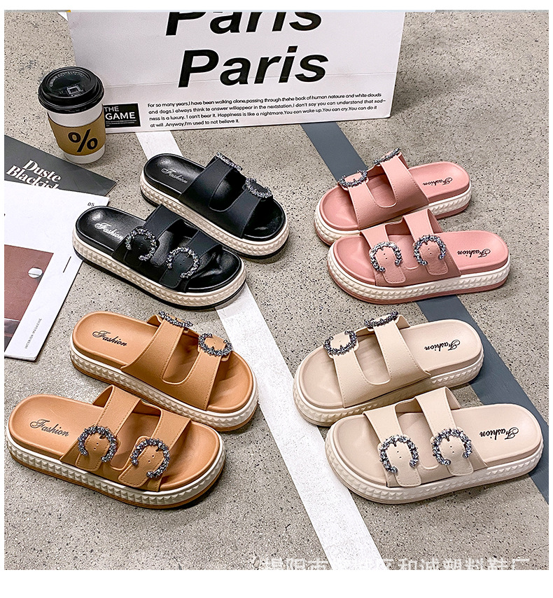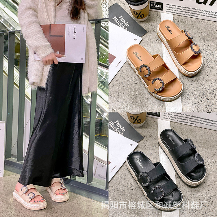 夏季厚底拖鞋女外穿新款韓版時尚搭釦平底涼鞋圓頭露趾沙灘鞋