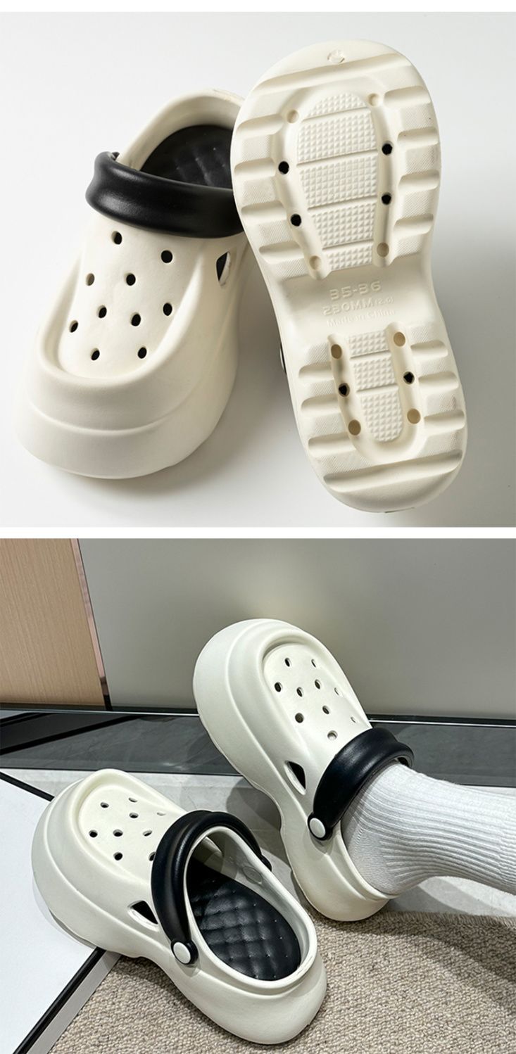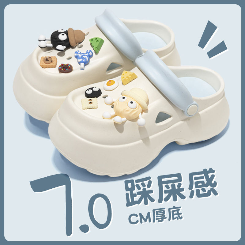 厚底洞洞鞋女款2025新款夏季外穿防滑增高跟松糕涼鞋沙灘包頭拖鞋