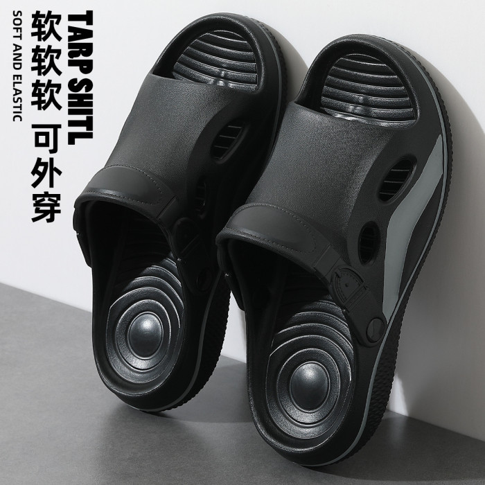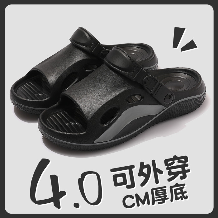 男士沙灘拖鞋夏季外穿透氣休閒厚底踩屎感防滑兩用涼拖鞋男夏