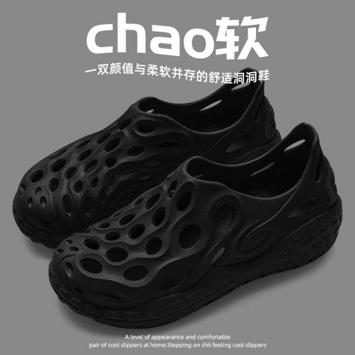 時尚外穿洞洞鞋男士夏季2025新款室內居家防滑沙灘旅行鏤空涼拖鞋