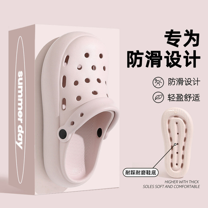 2025新款純色加厚洞洞鞋女士踩屎感軟包頭外穿女款涼拖鞋EVA居家