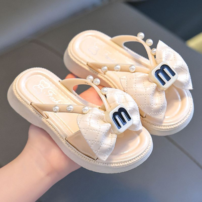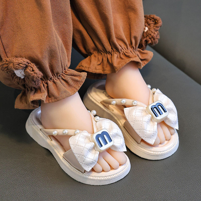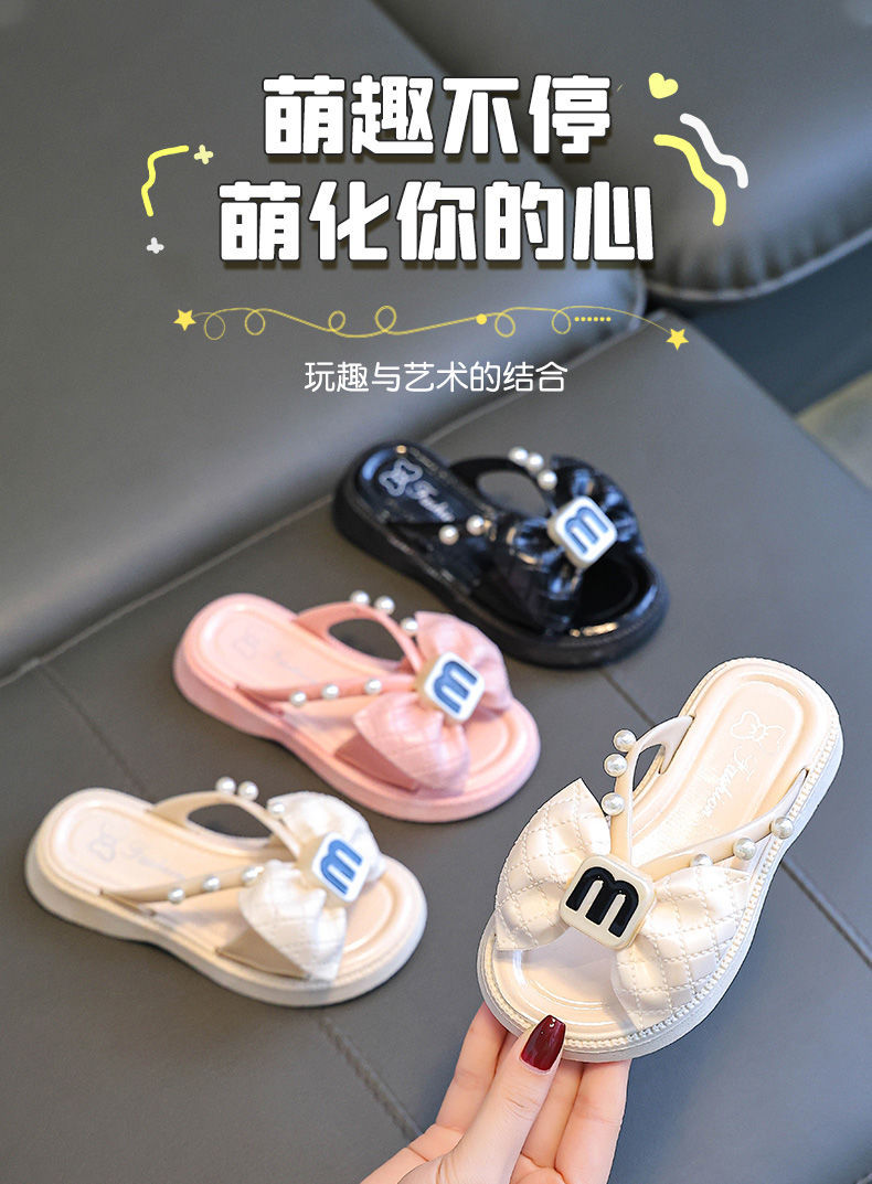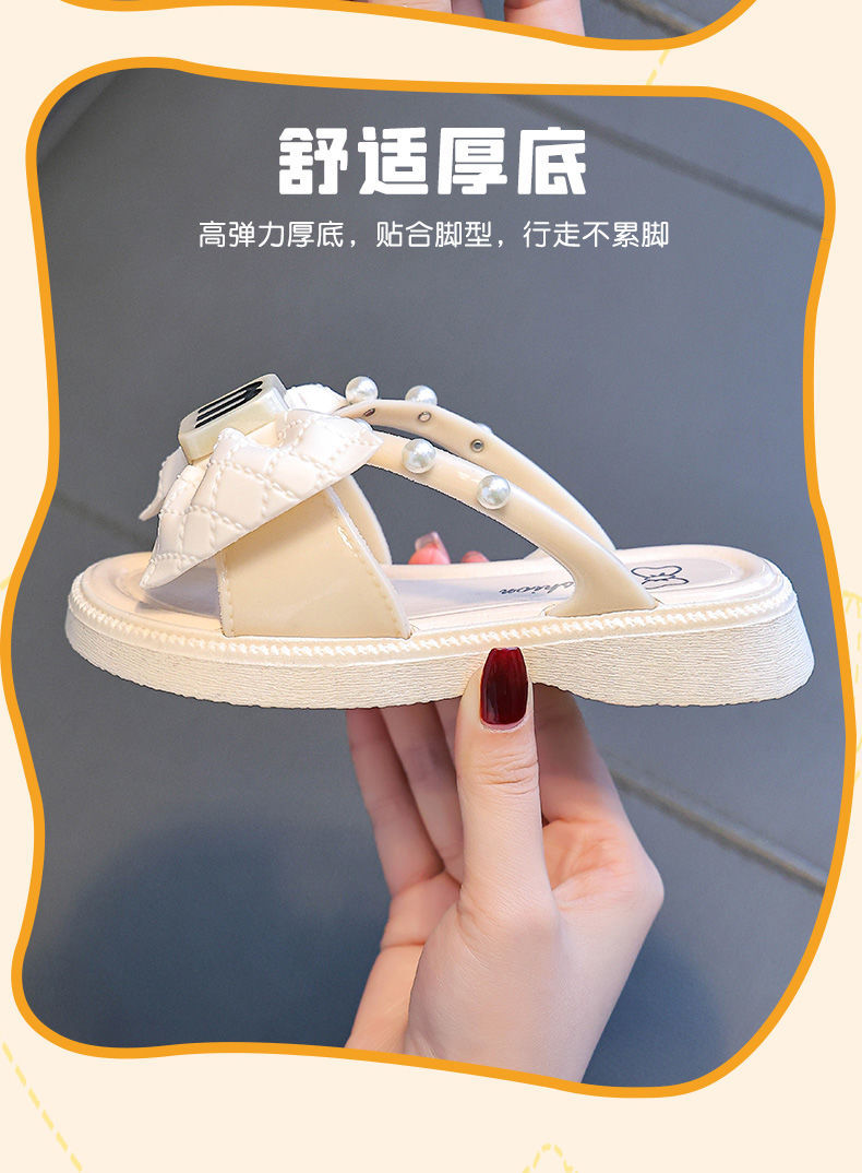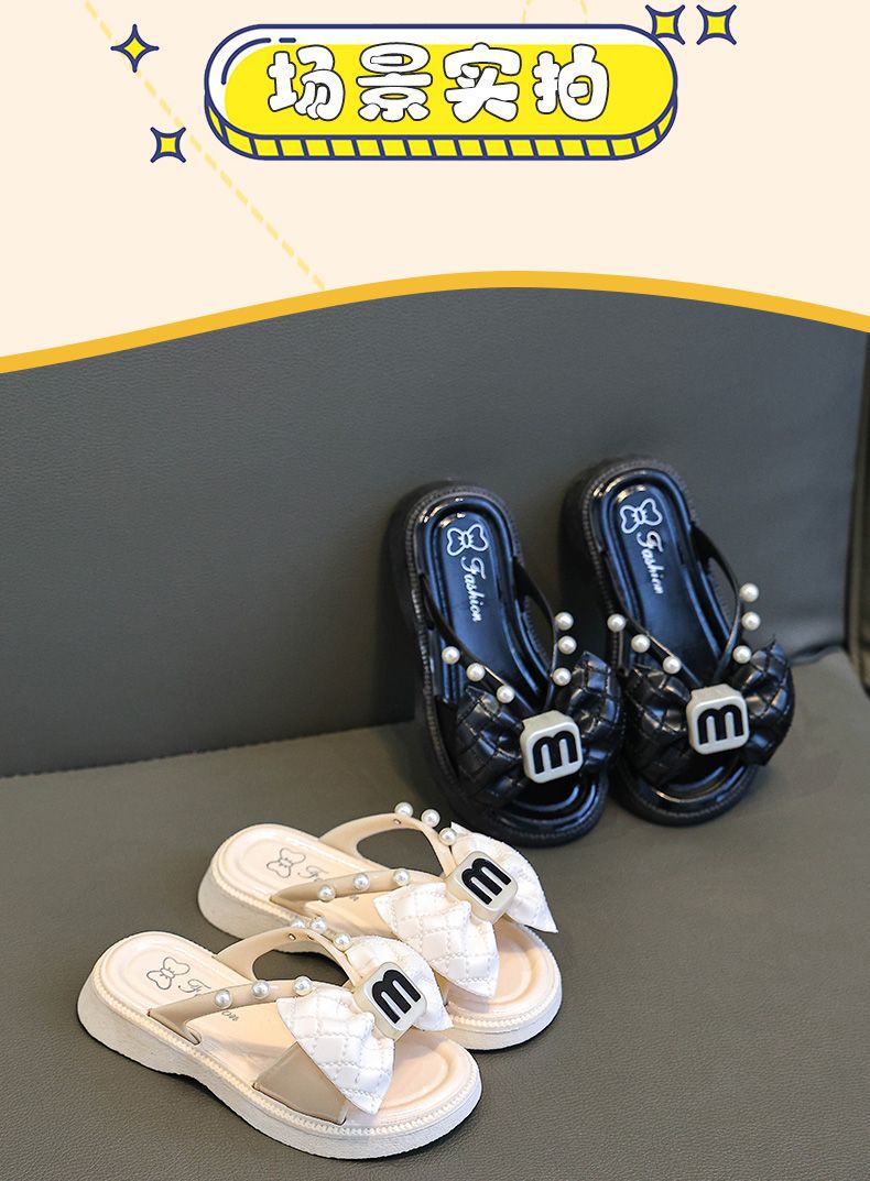 女童兒童拖鞋2024時尚韓版夏季蝴蝶結可愛公主新款涼鞋寶寶中大童