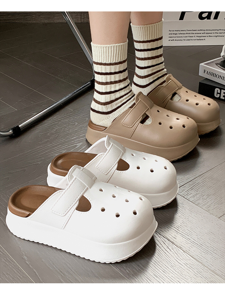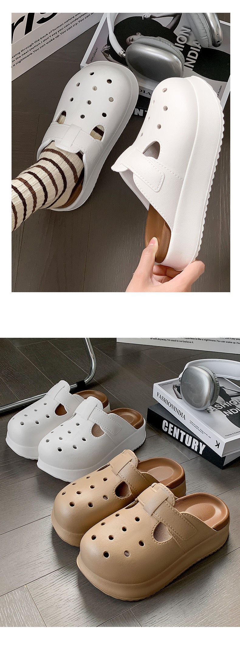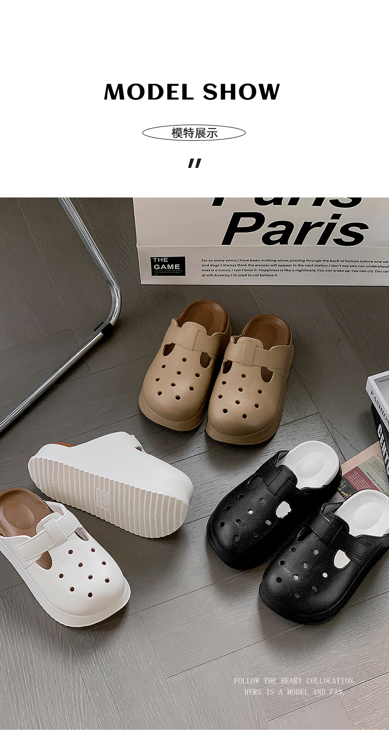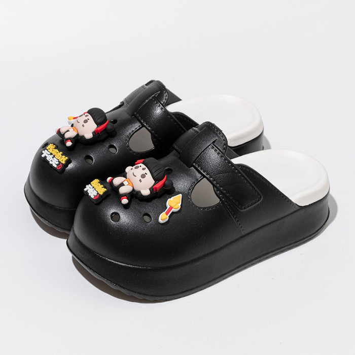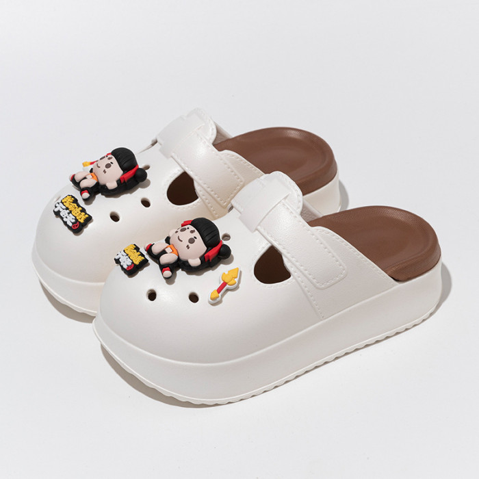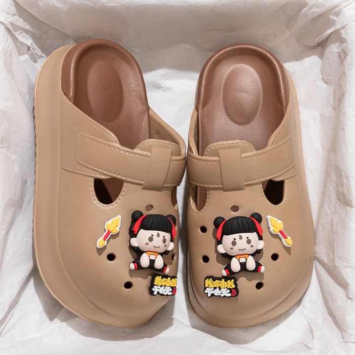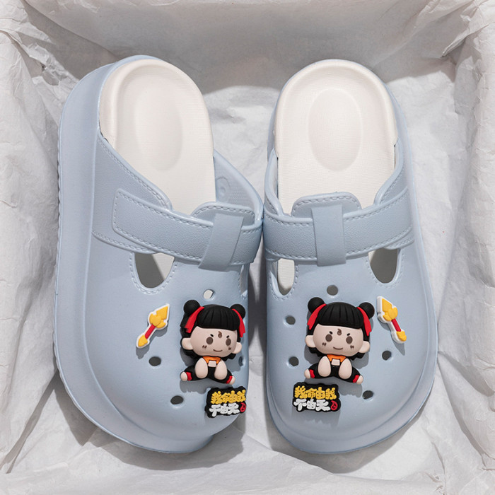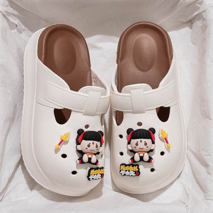 新款雙拼色魔童哪吒洞洞鞋eva厚底外穿勃肯鞋ins風洞洞鞋女