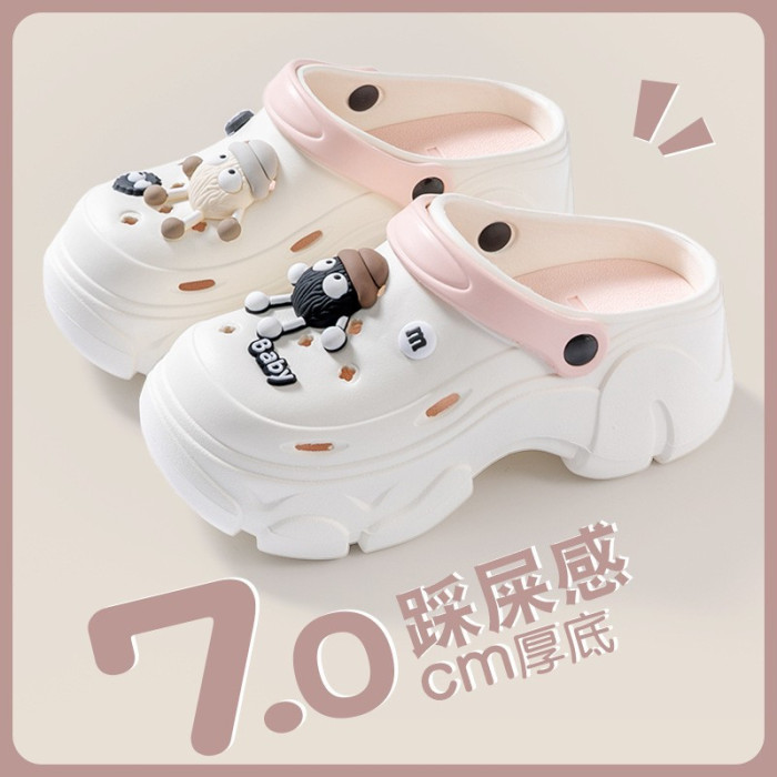 踩屎感厚底洞洞鞋女款2025新款外穿逛街防滑不累腳包頭涼拖鞋女士