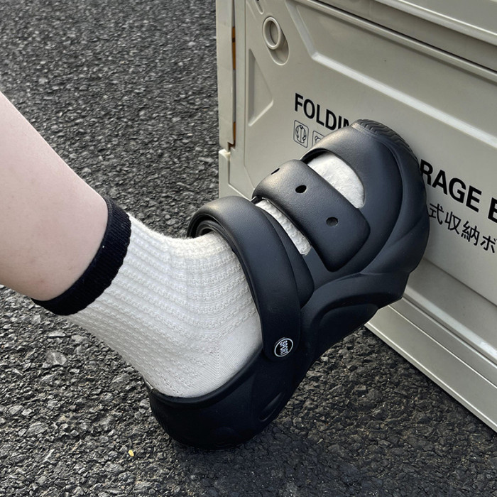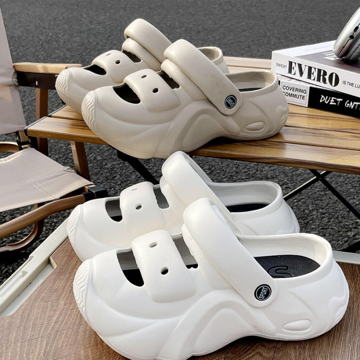 踩屎感拖鞋女夏季新款厚底增高戶外可愛海邊沙灘防滑兩穿包頭涼鞋