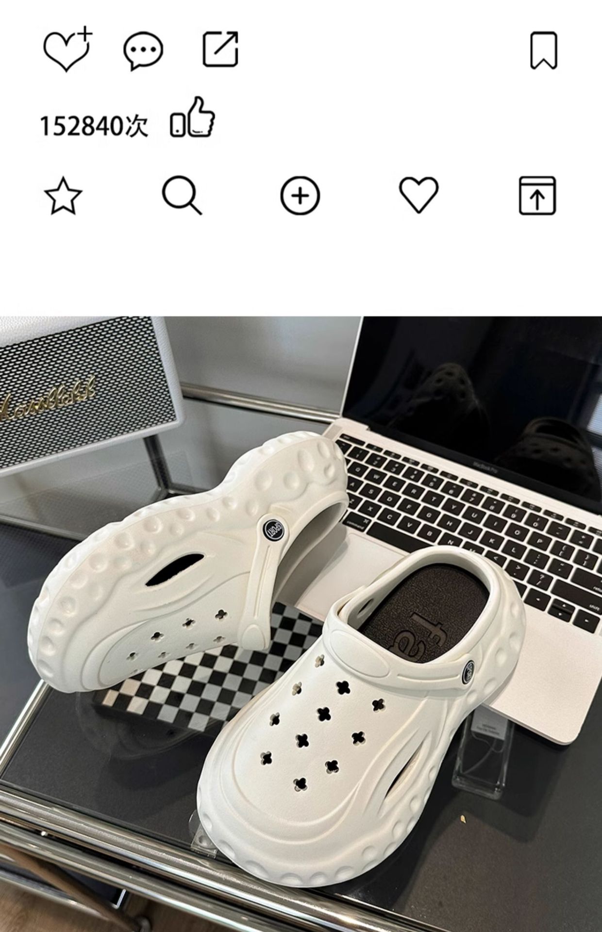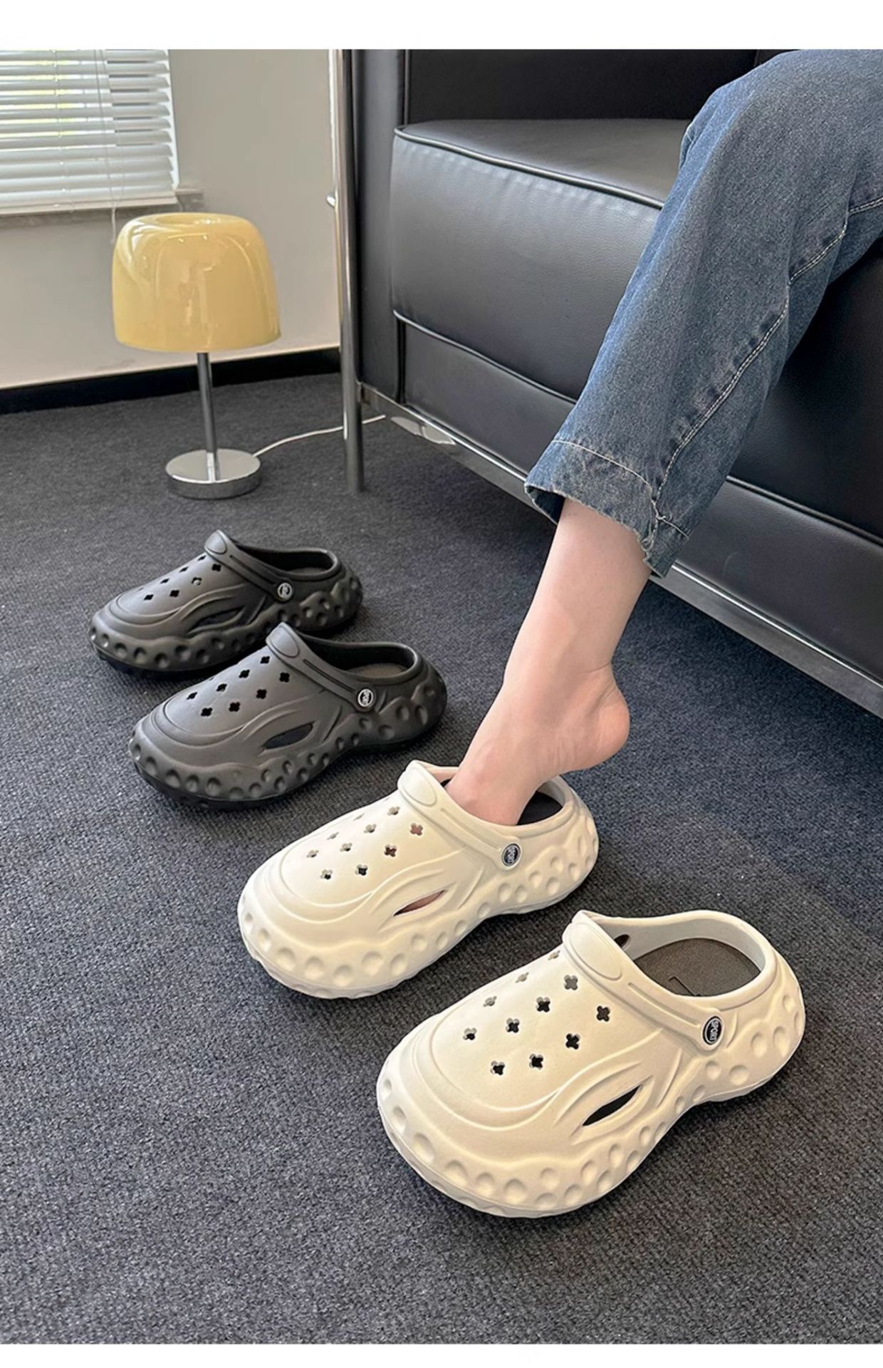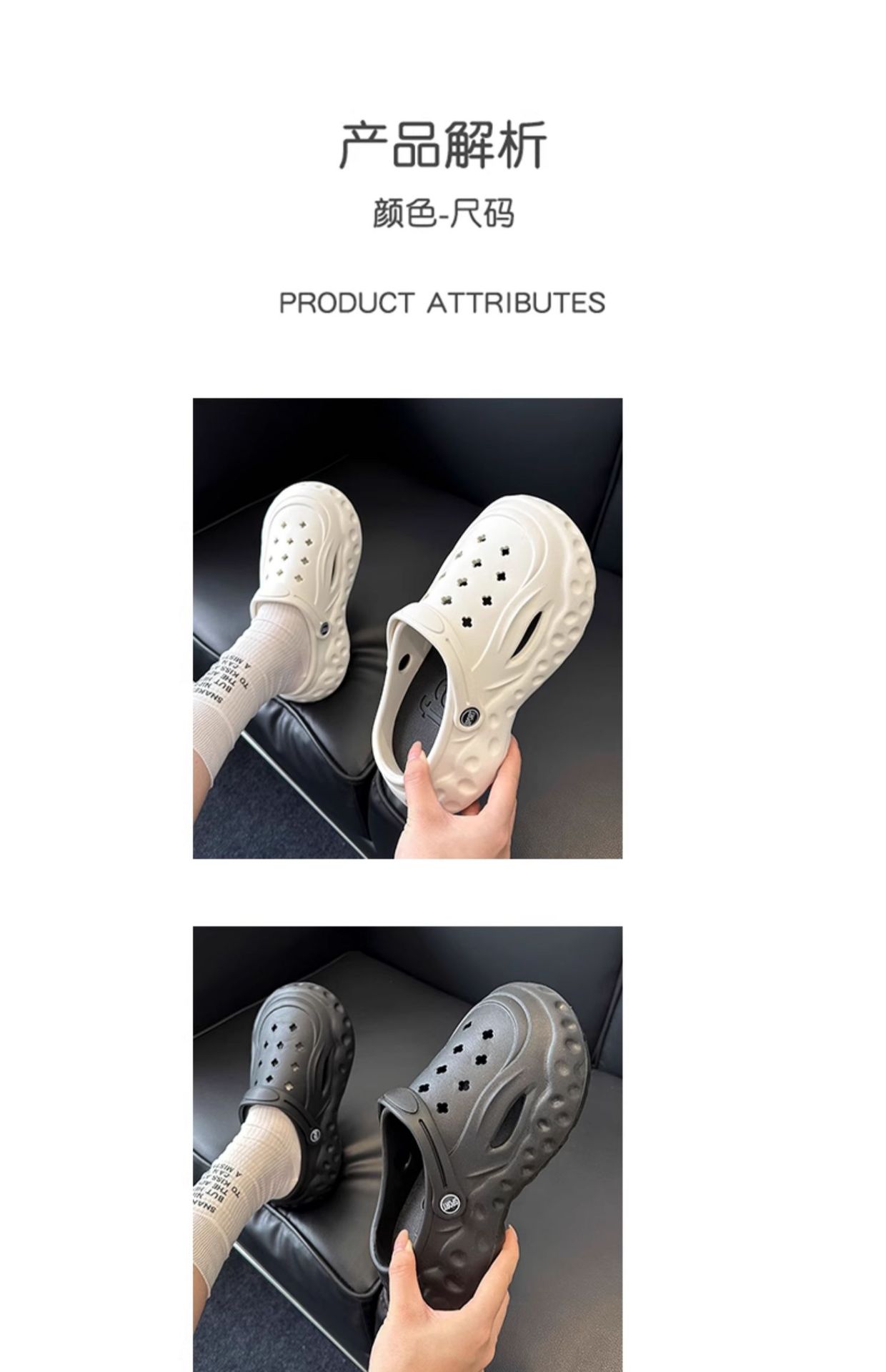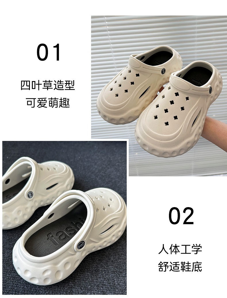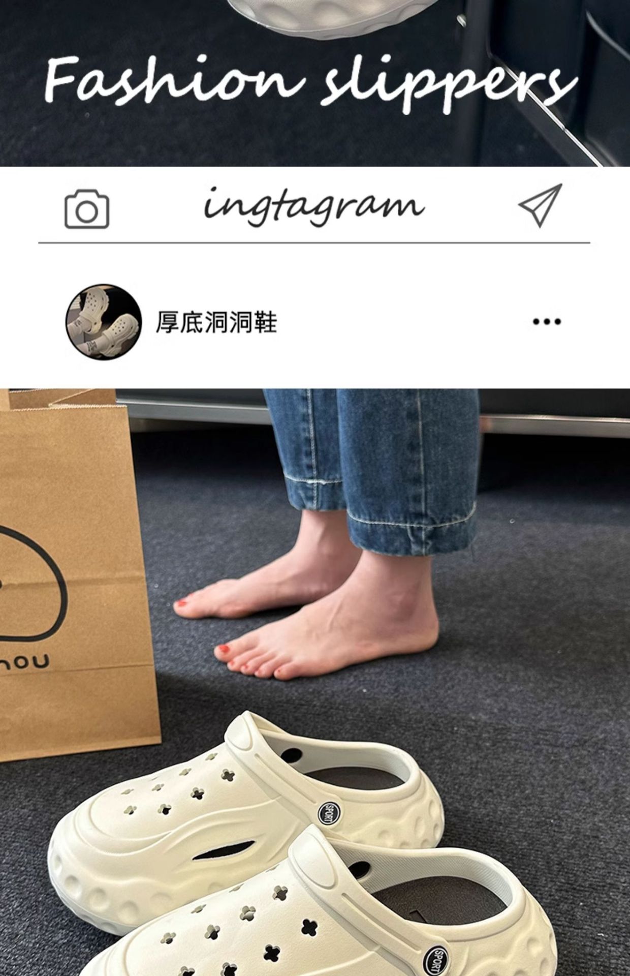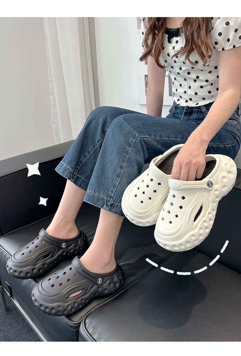 煤球洞洞鞋女款2024新款夏季外穿厚底增高海邊沙灘防滑包頭涼鞋女