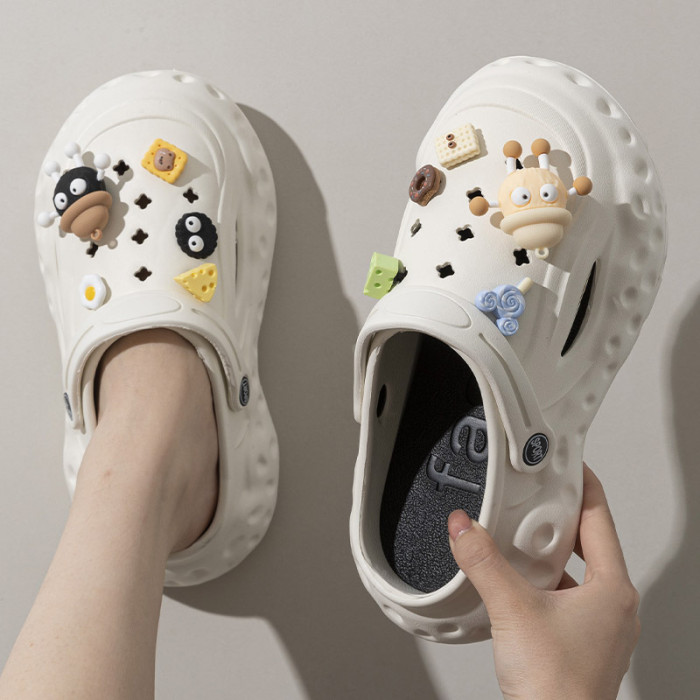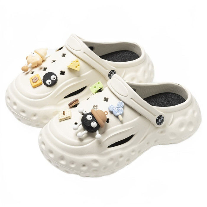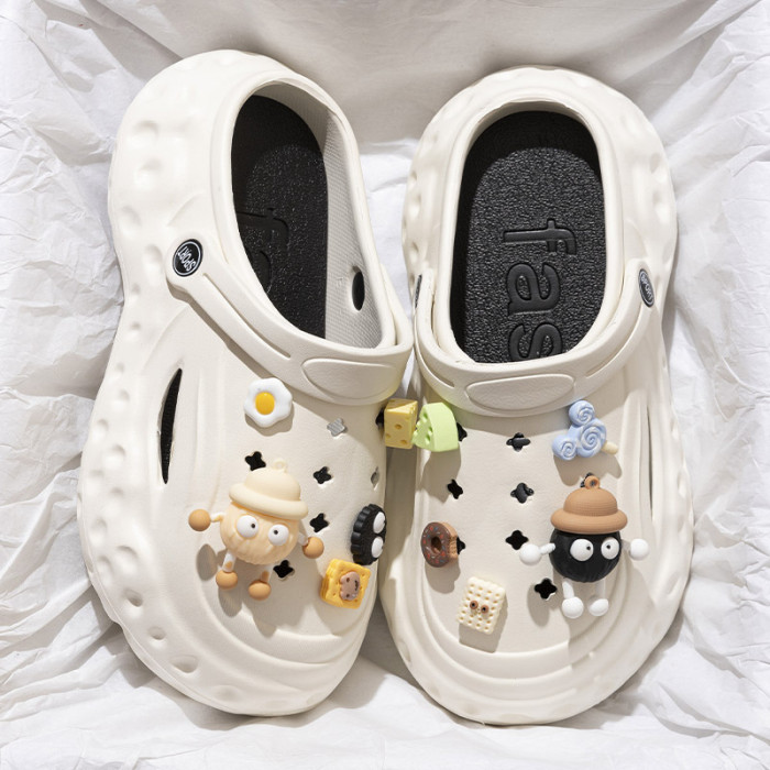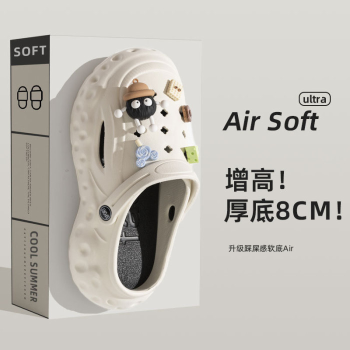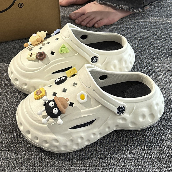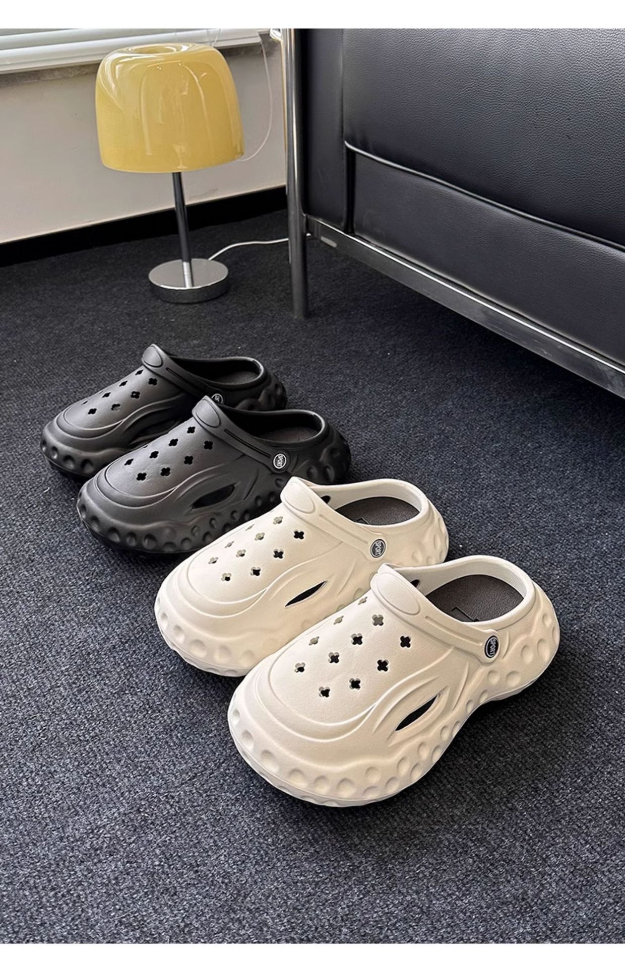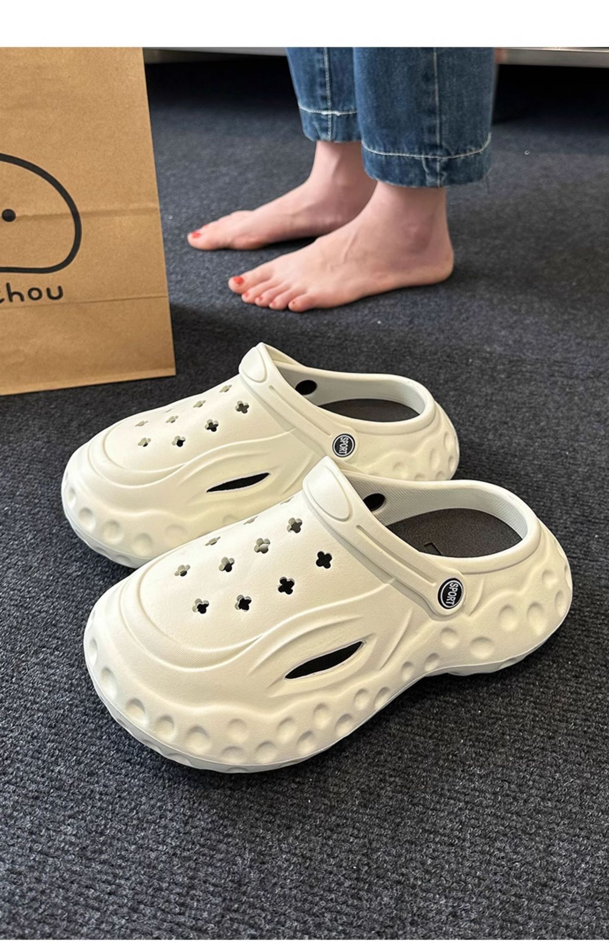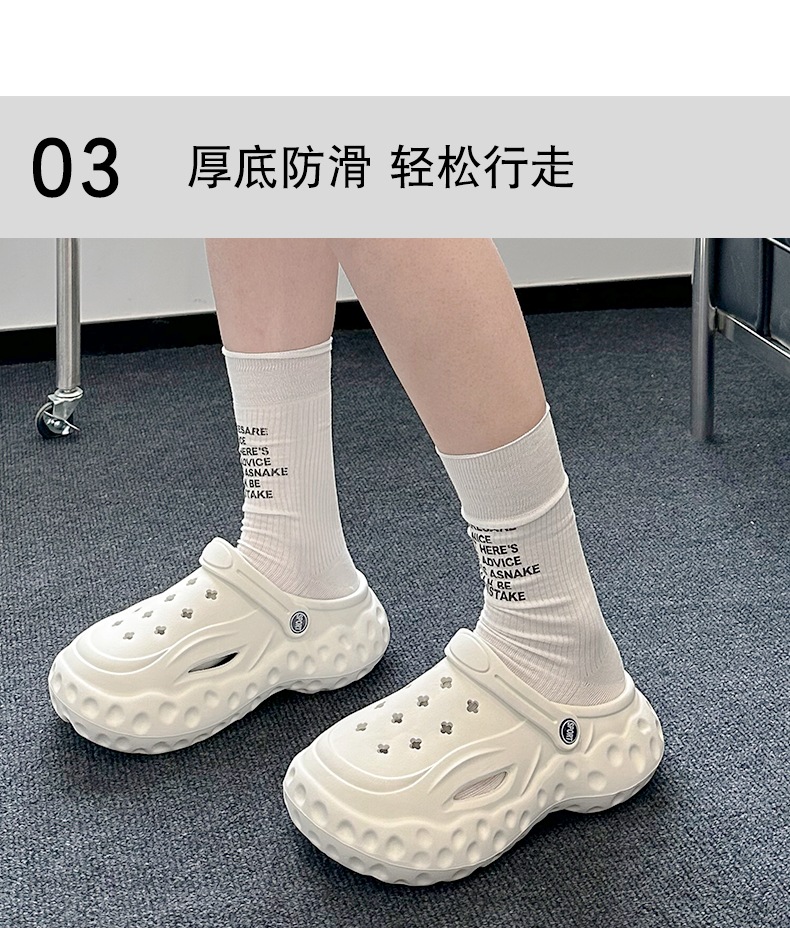 煤球洞洞鞋女款2024新款夏季外穿厚底增高海邊沙灘防滑包頭涼鞋女