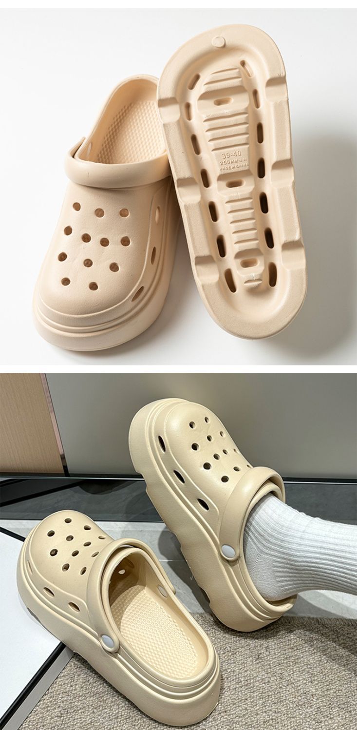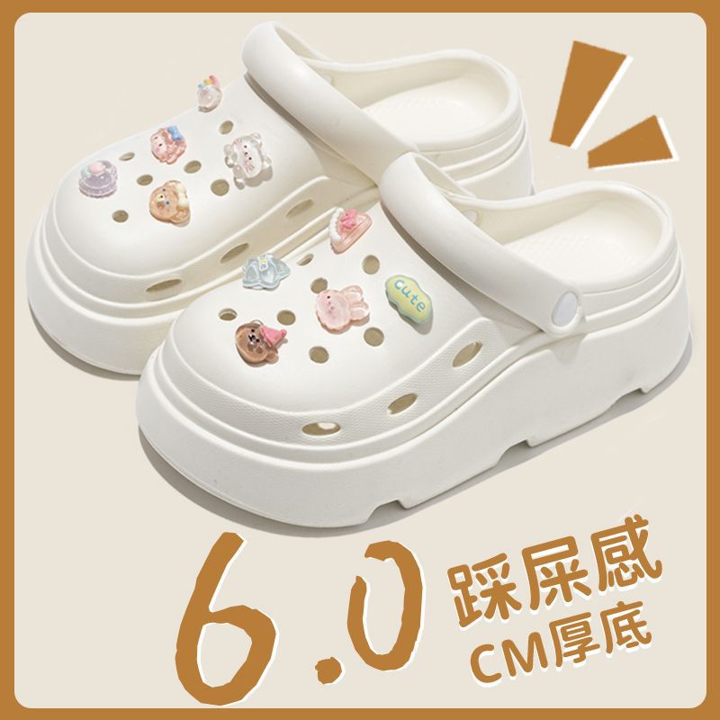 厚底洞洞鞋女款外穿夏季2025新款海邊沙灘防滑包頭增高涼拖鞋女士