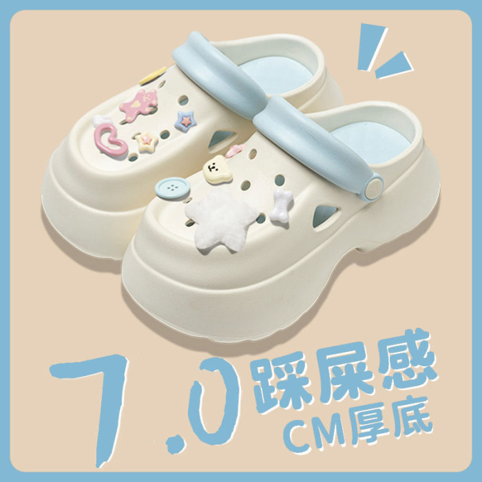 厚底洞洞鞋女款2025新款超火夏季外穿防滑防臭包頭沙灘涼拖鞋女士