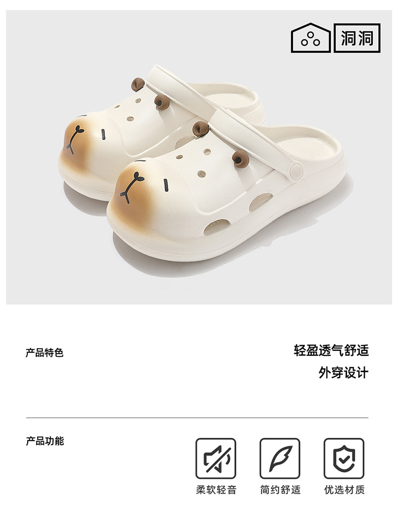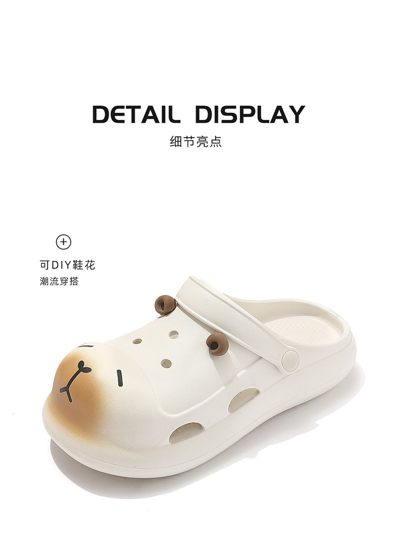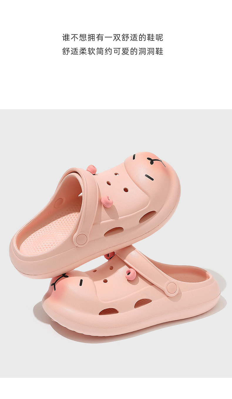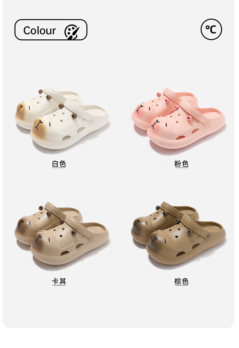 2025夏季可愛卡皮巴拉洞洞鞋透氣防滑兒童卡通款室內外厚底拖鞋女