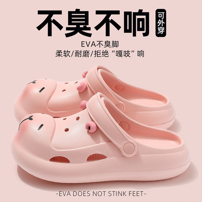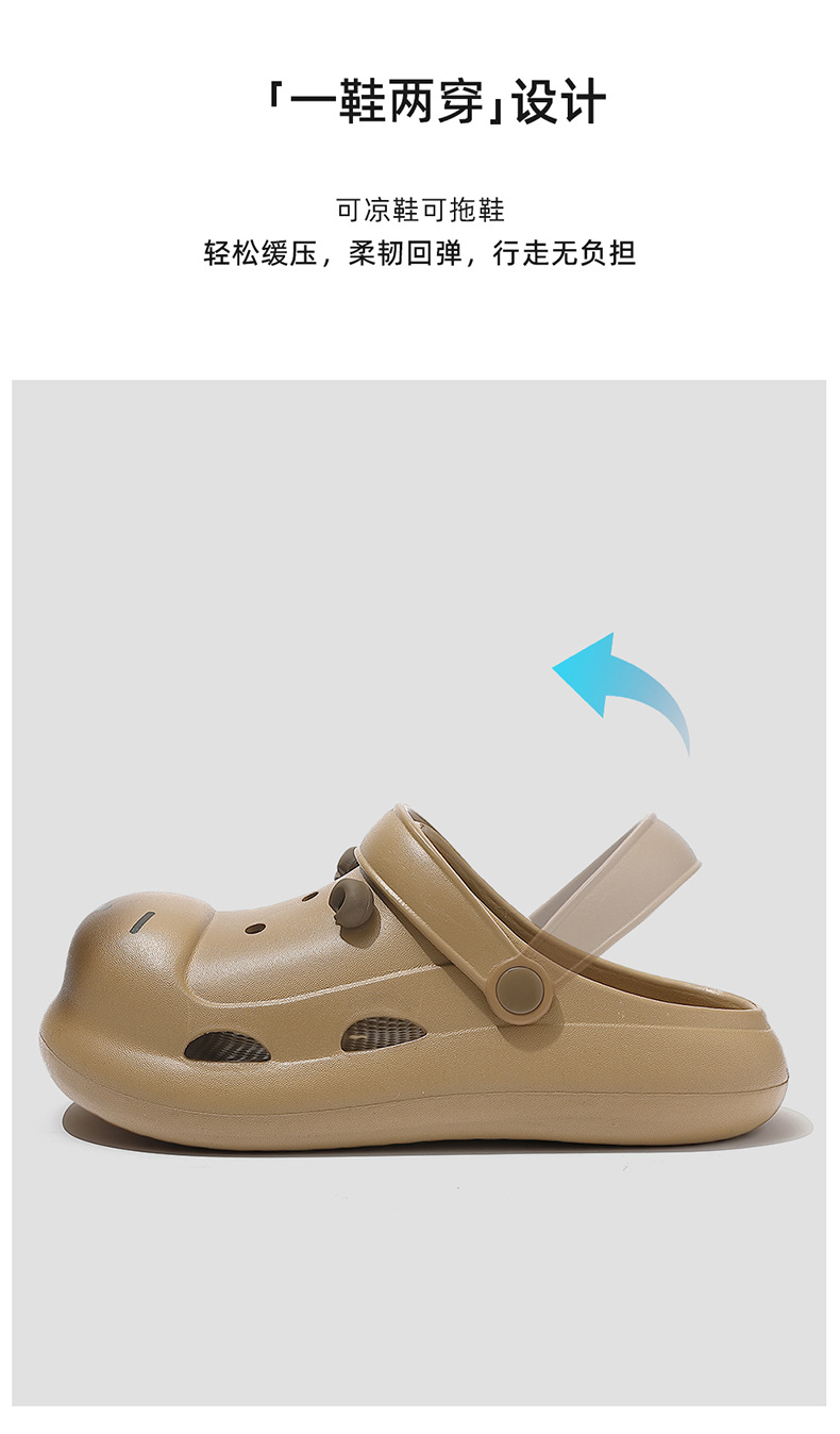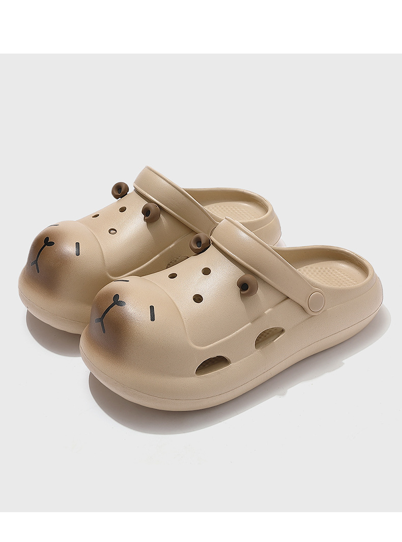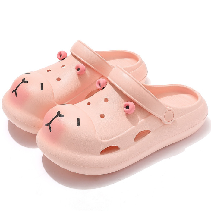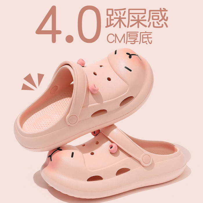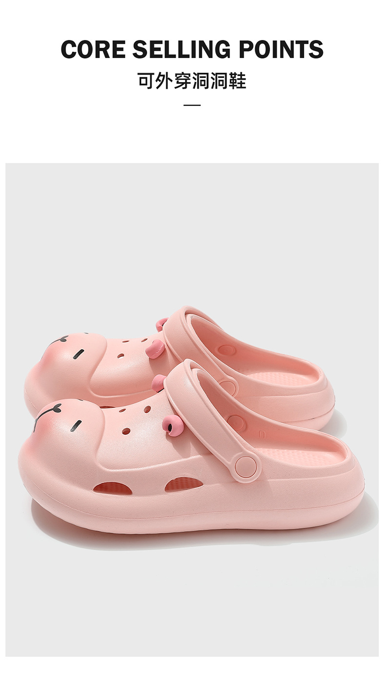 2025夏季可愛卡皮巴拉洞洞鞋透氣防滑兒童卡通款室內外厚底拖鞋女