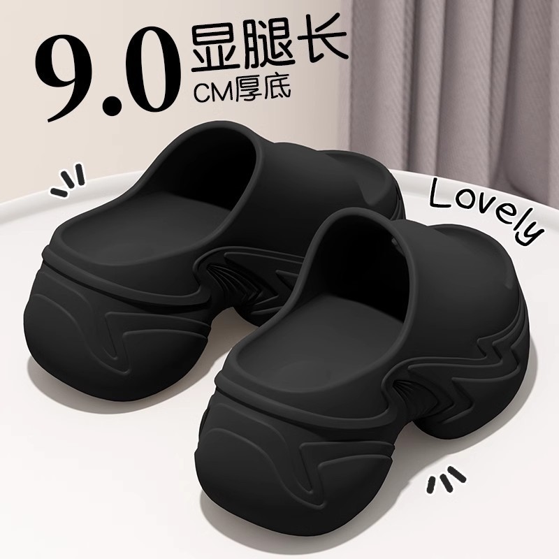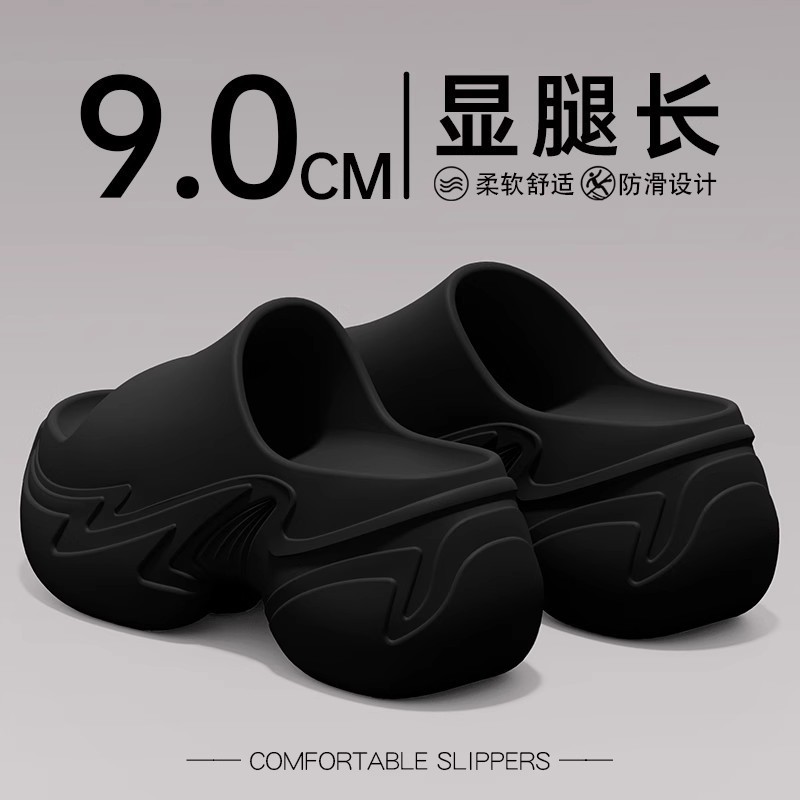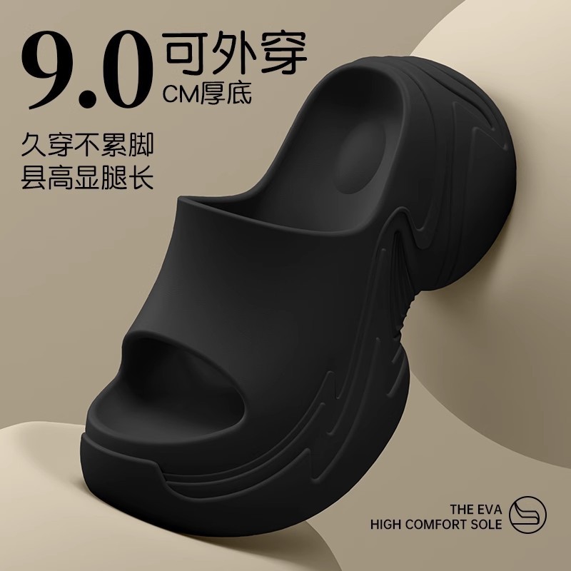 9.0厚底拖鞋女夏季韓版ins潮百搭增高松糕底防滑EVA踩屎感一字拖