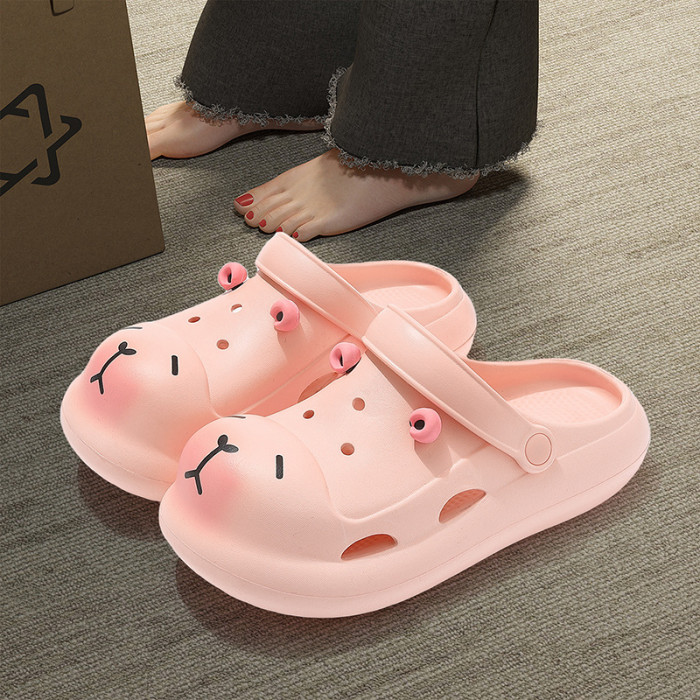 2025夏季新款卡皮巴拉洞洞鞋透氣防滑兒童款室內外兩穿厚底拖鞋女