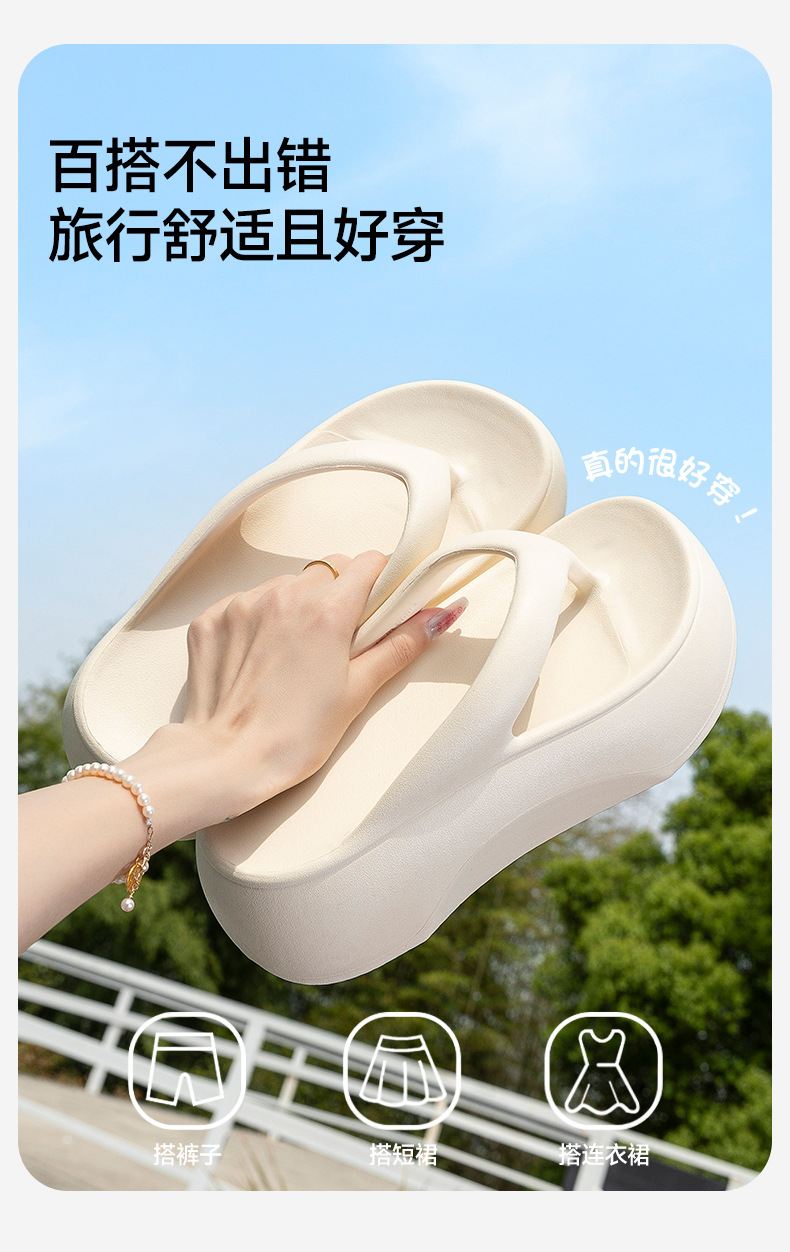 新款厚底增高人字拖女士夏外穿簡約夾腳拖鞋防滑沙灘夾趾夾角拖鞋