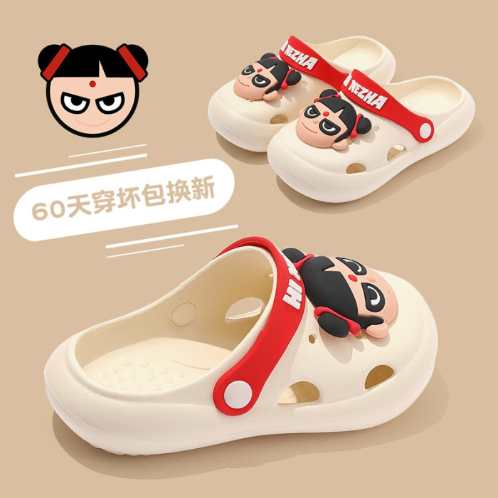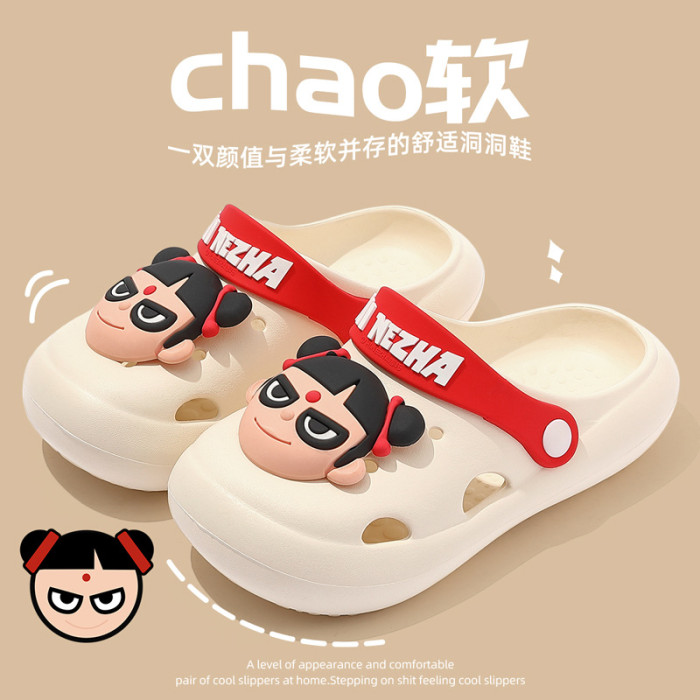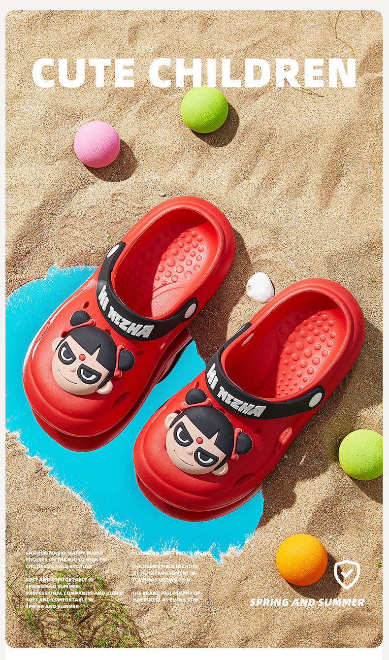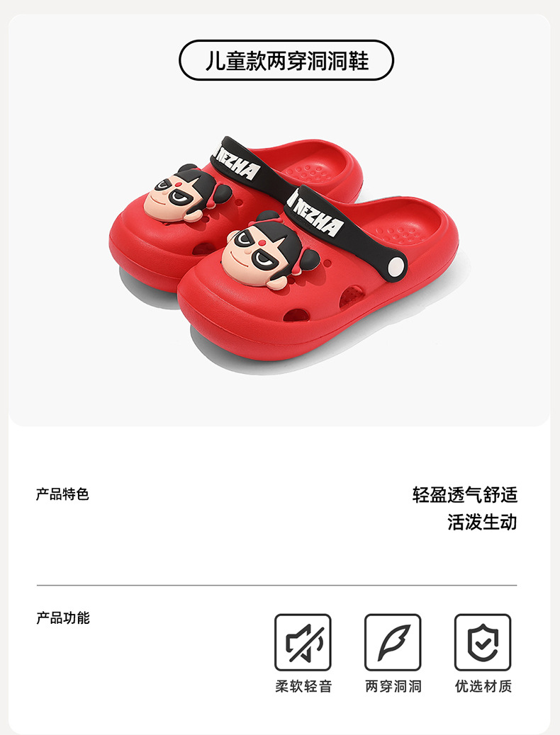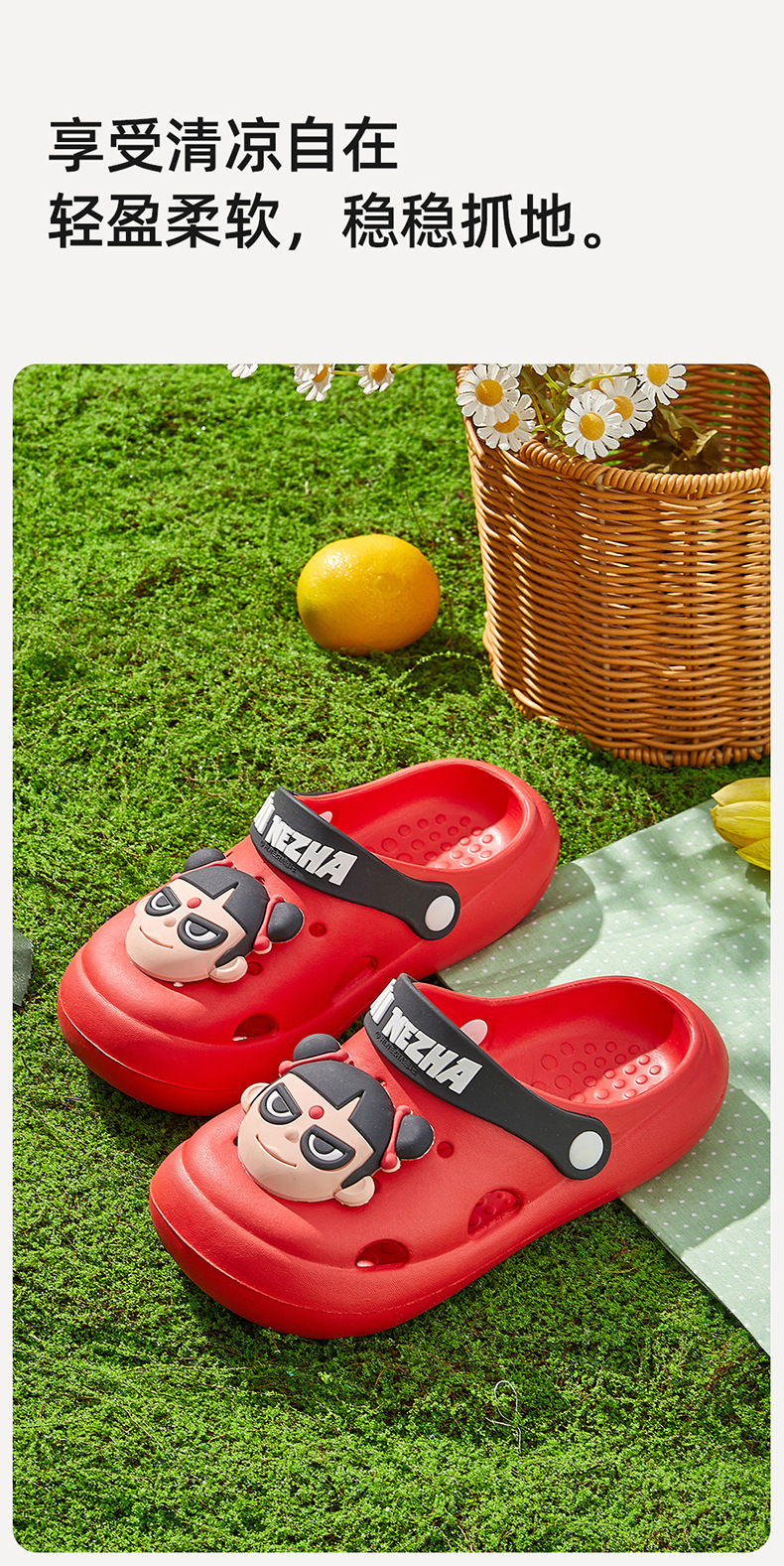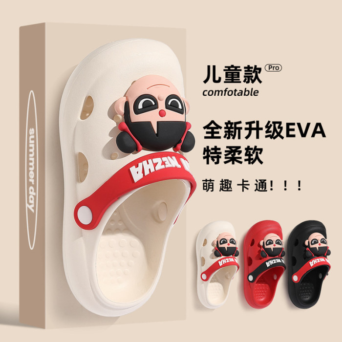 兒童洞洞鞋卡通哪吒2025夏季新款外穿軟底戶外防滑男女童涼鞋