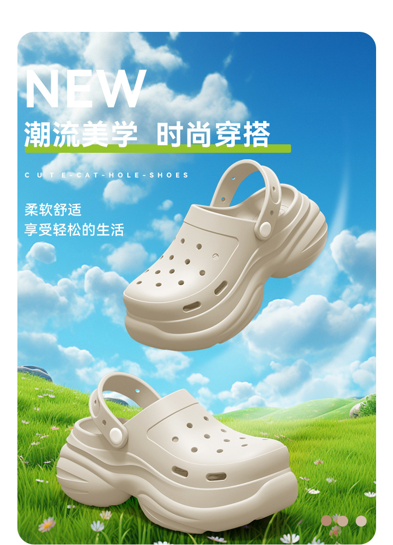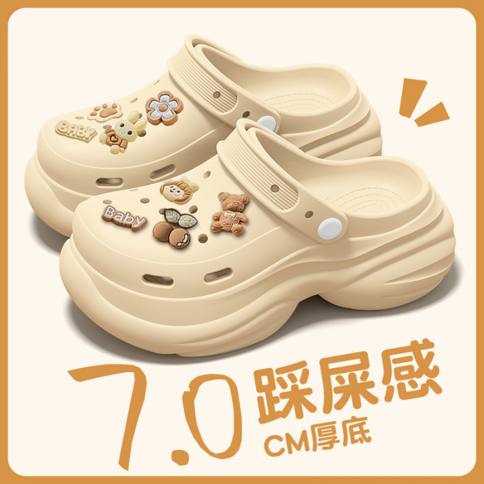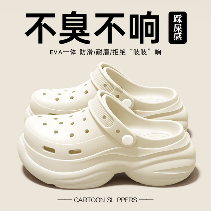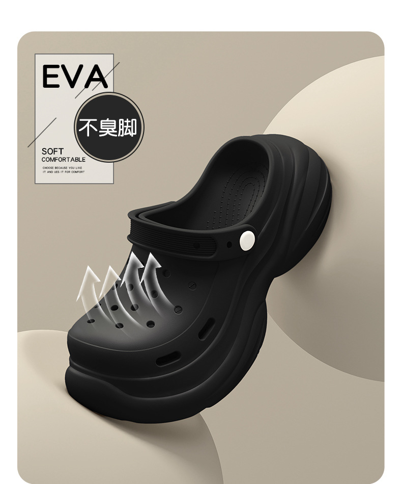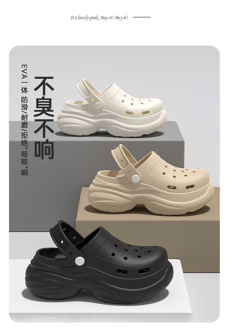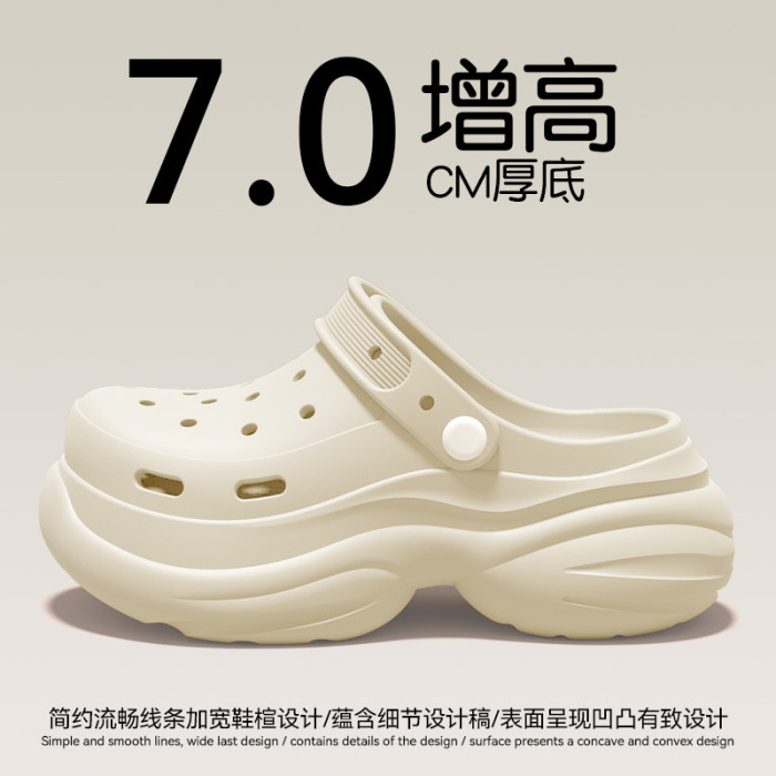 厚底增高洞洞鞋女款2025新款夏季外穿家居海邊沙灘防滑涼拖鞋女士
