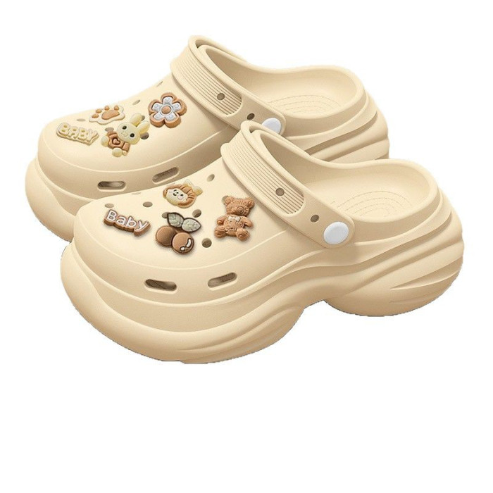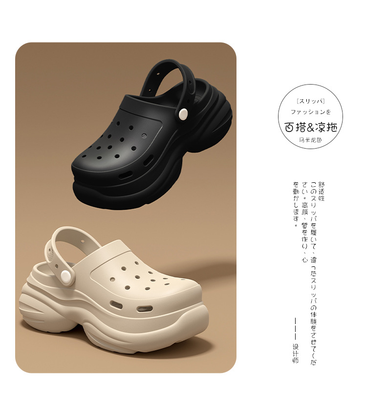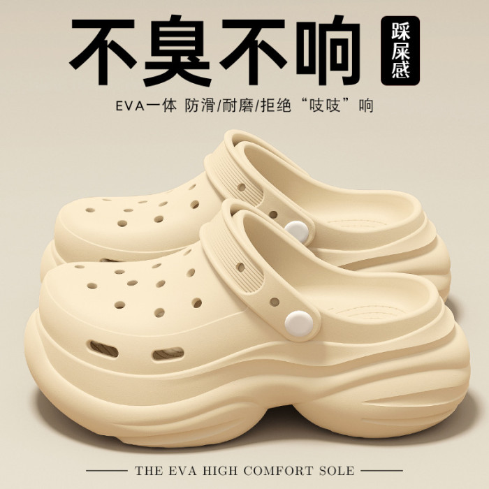 孕婦防滑洞洞鞋女2025新款夏季外穿厚底逛街度假包頭半涼拖鞋女士
