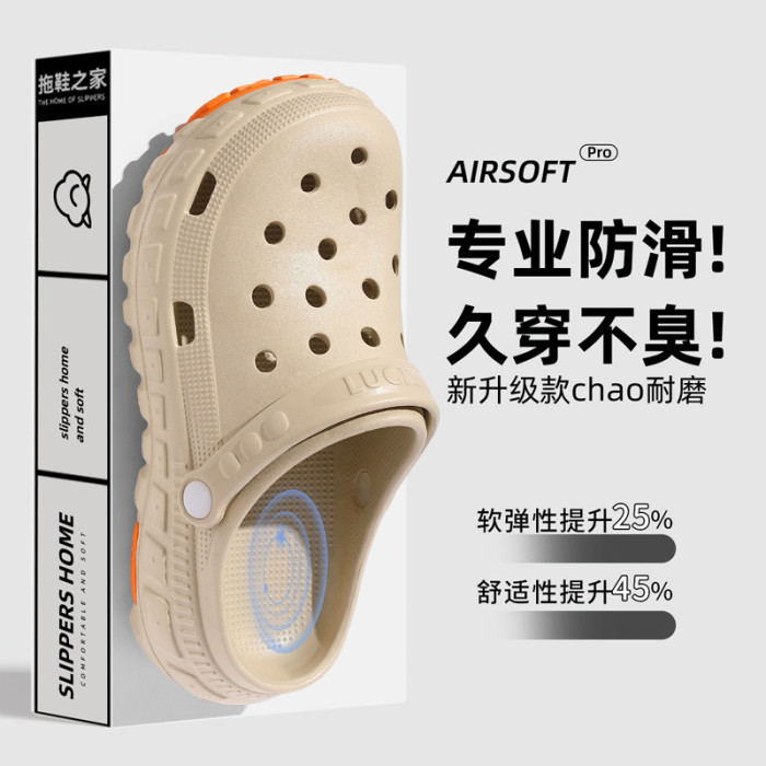洞洞鞋男士外穿夏季輪胎底外穿家用防滑厚底沙灘包頭涼鞋情侶